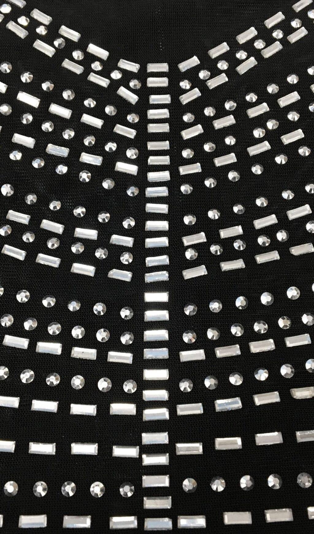 LACE SEE-THROUGH DIAMONDS MAXI DRESS IN BLACK