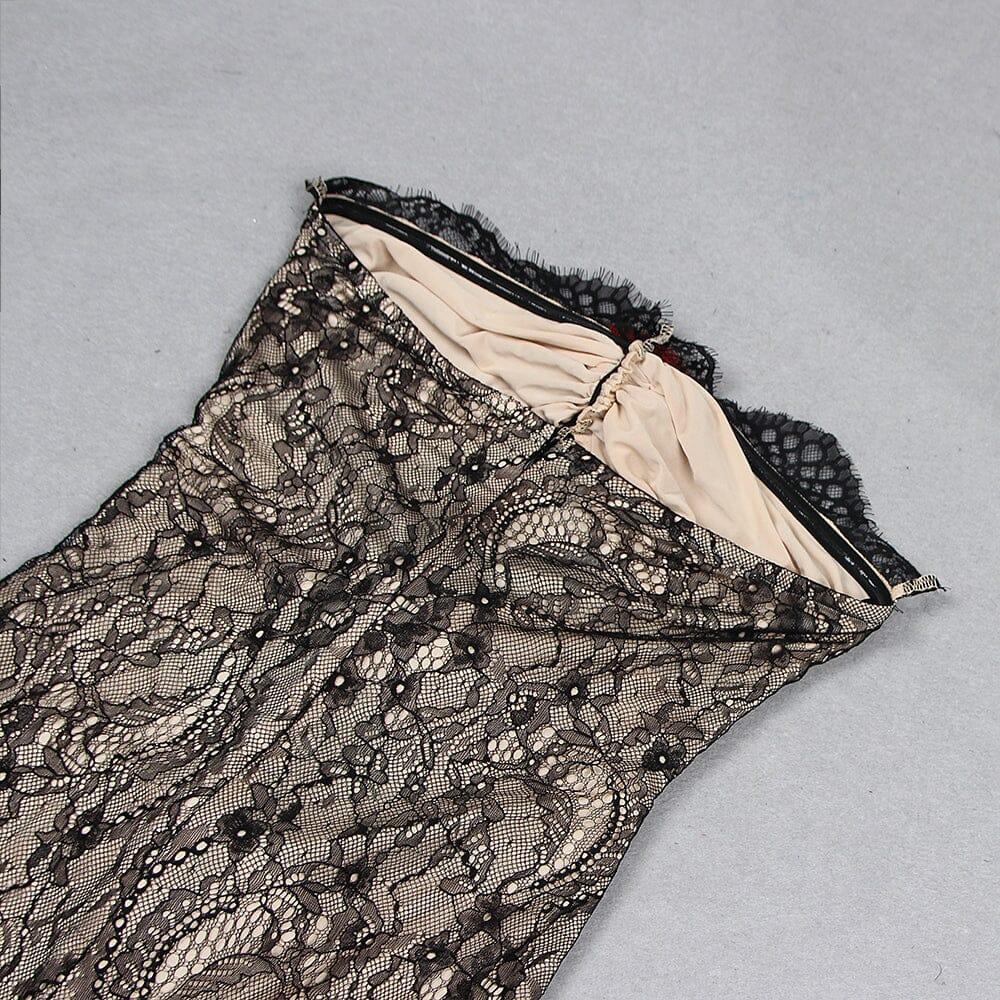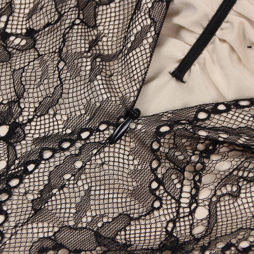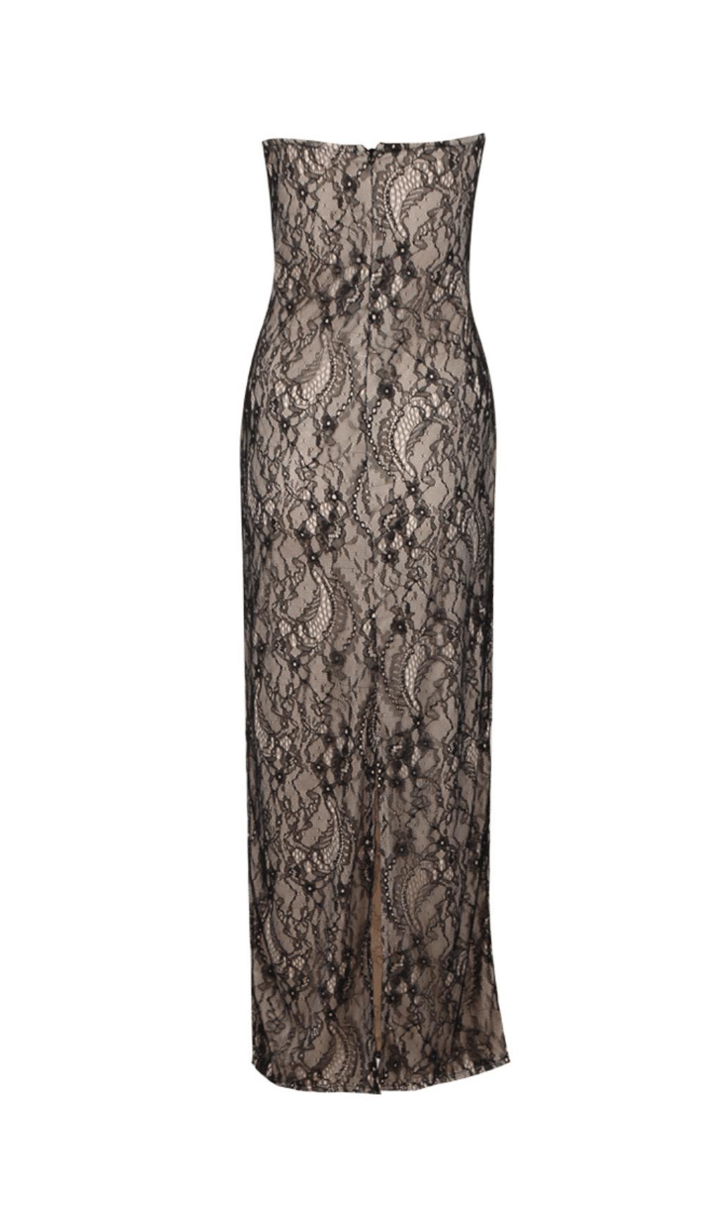 LACE SHEER FLOWER APPLIQUE CUT-OUT MAXI DRESS