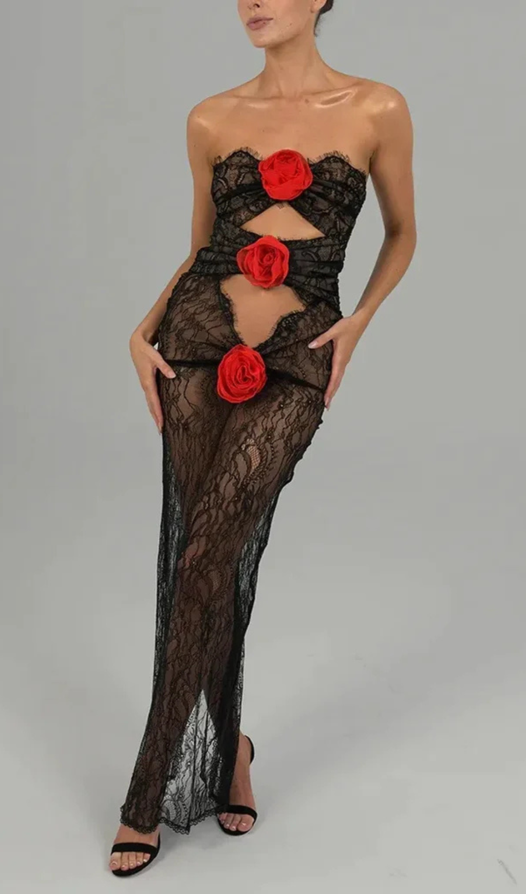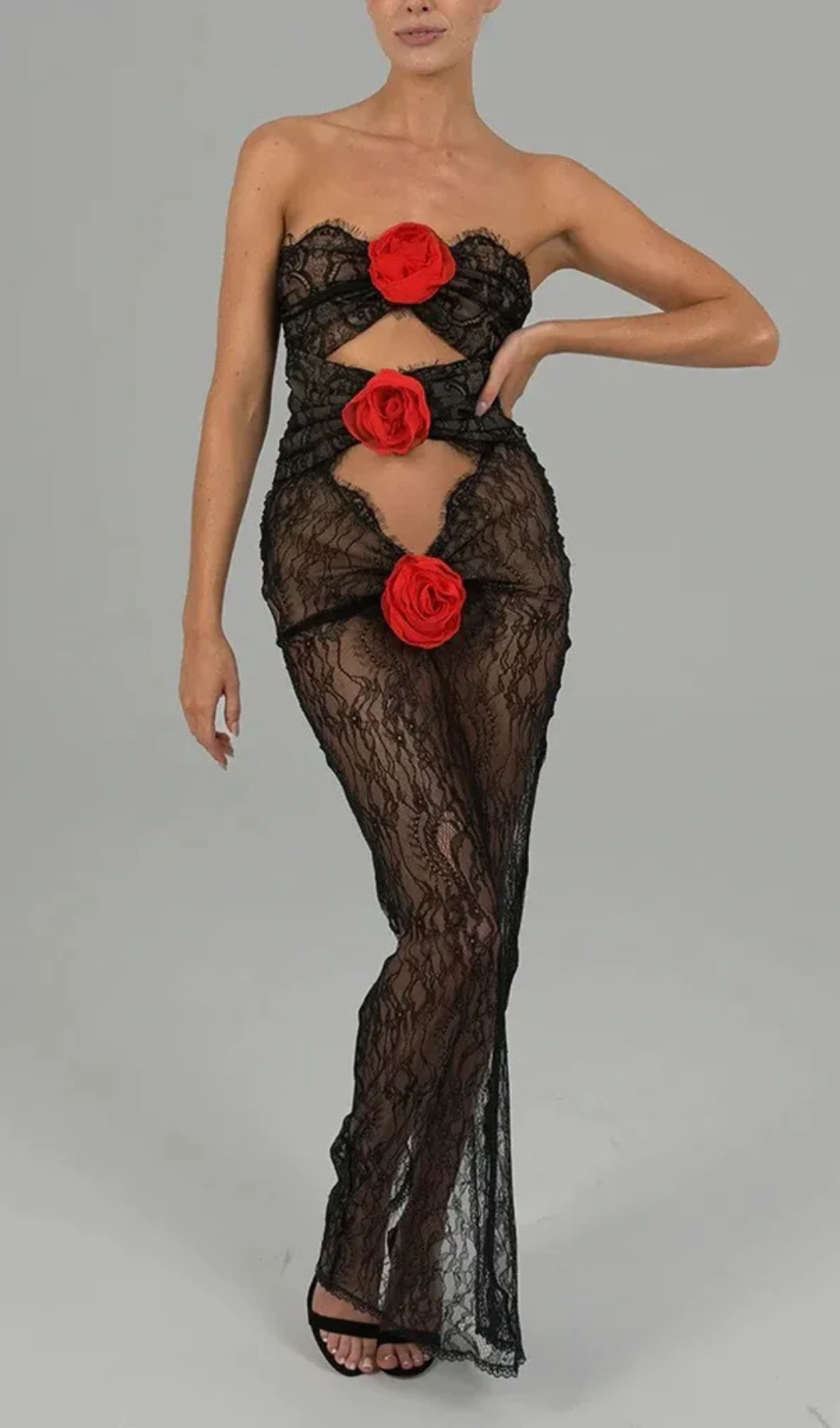 ADIA FLOWER CUT-OUT MAXI DRESS