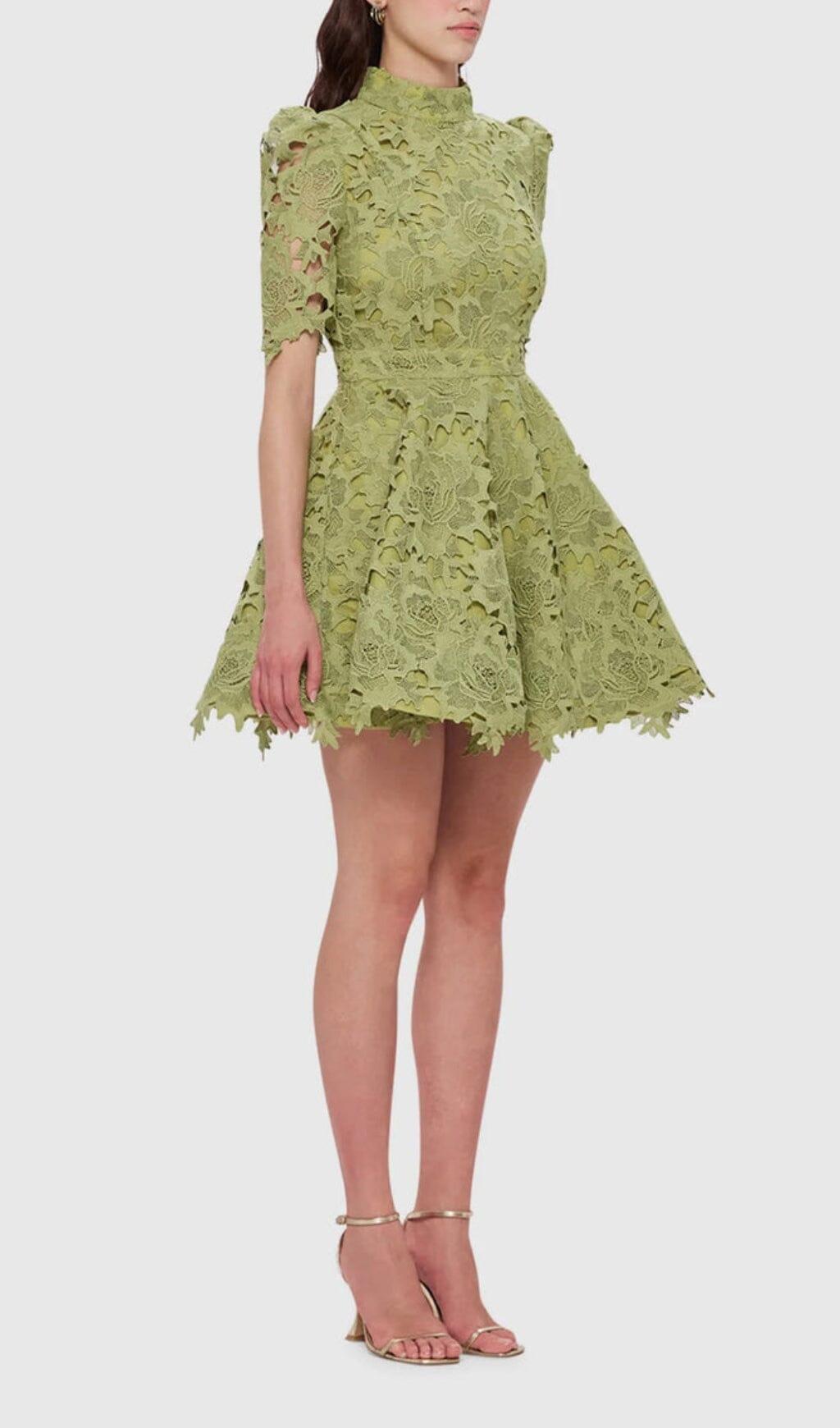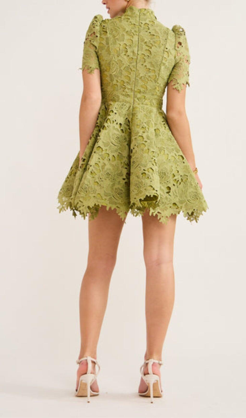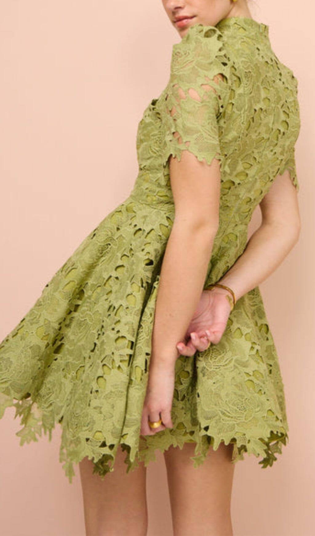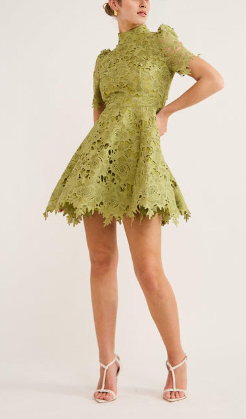 LACE SHORT SLEEVE MINI DRESS IN OLIVE