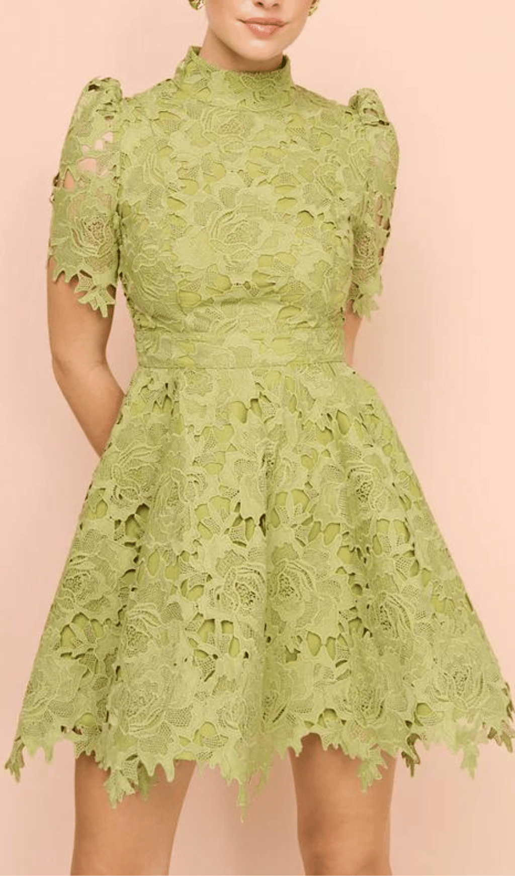 ADORA OLIVE LACE SLEEVE MINI DRESS