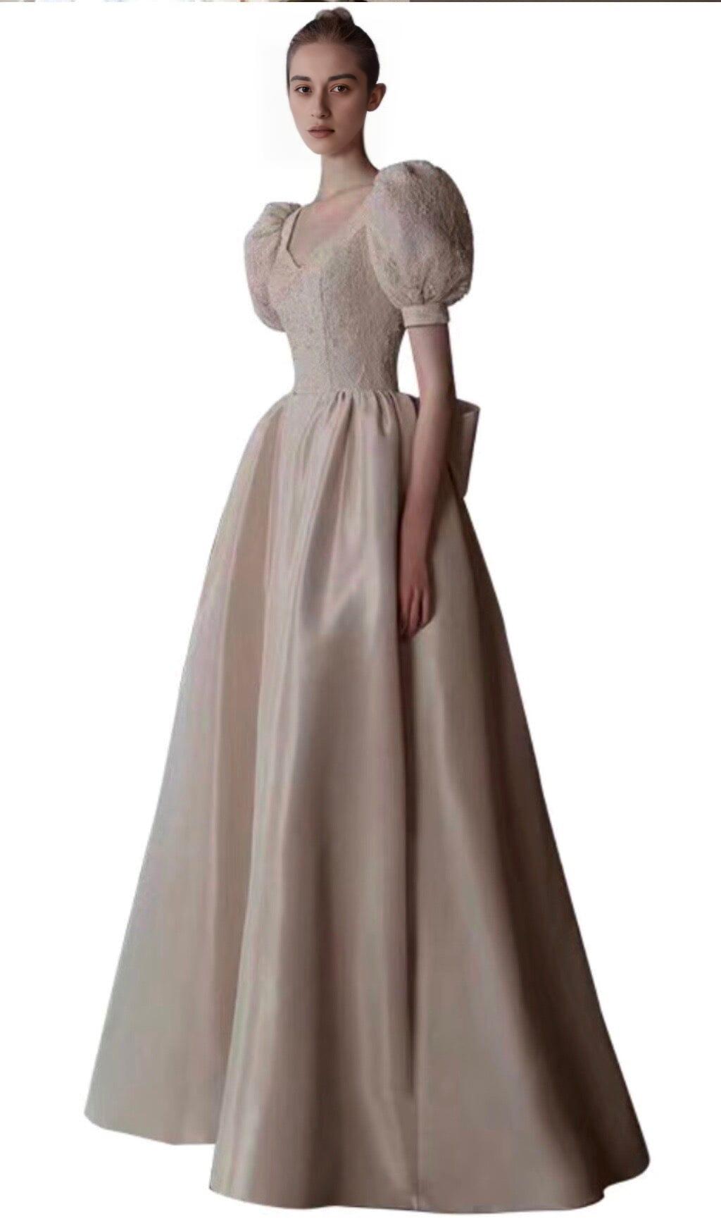 Turn heads as you twirl in this dress. The sweet bow at the back and waist gracefully dance with your every step, making you feel like a princess in a fairy tale. The maxi length adds an extra touch of sophistication, making it perfect for formal events, weddings, or any special occasion.