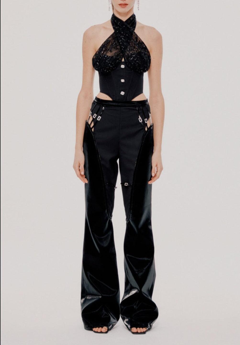 Introducing the Lace Stitching Halterneck Tube Top in Black
