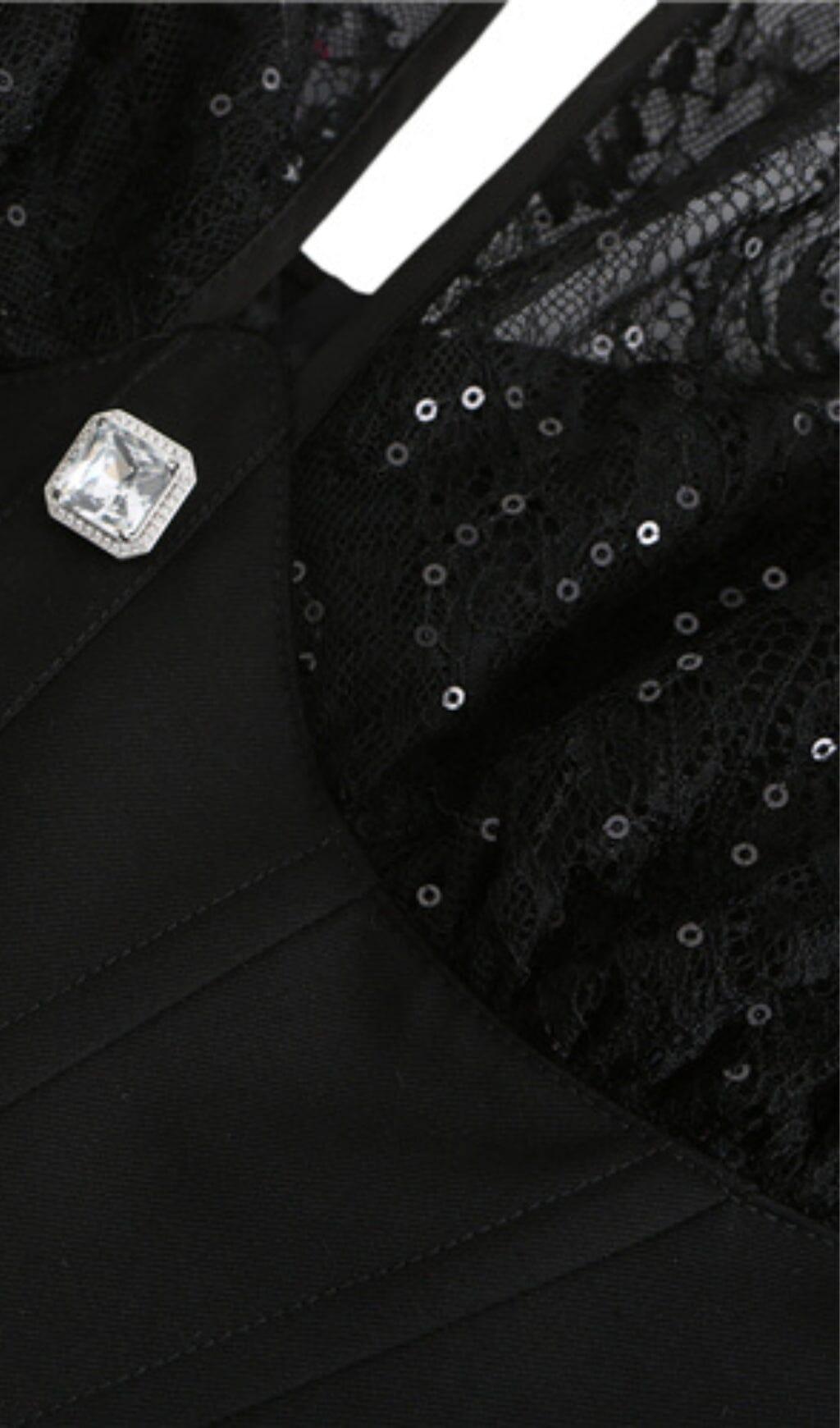 LACE STITCHING HATERNECK TUBE TOP IN BLACK