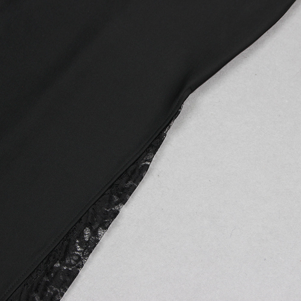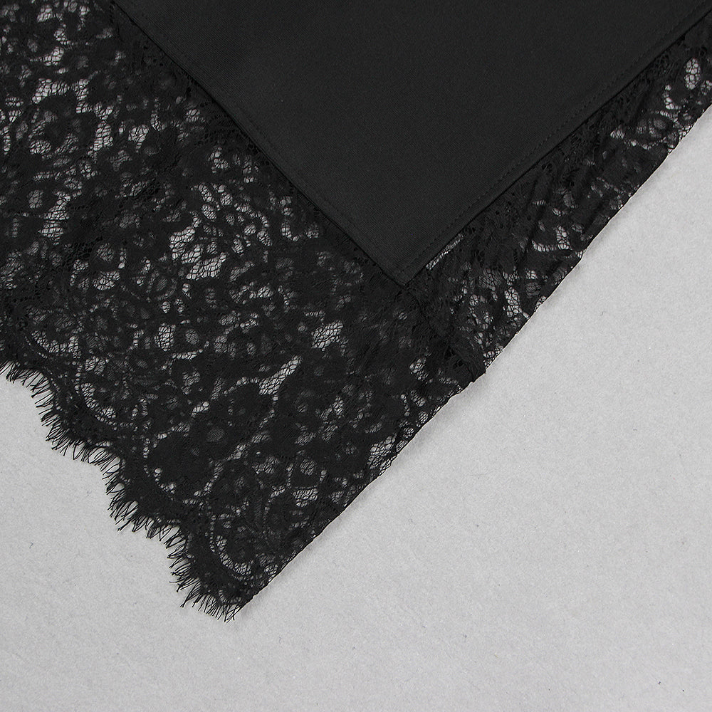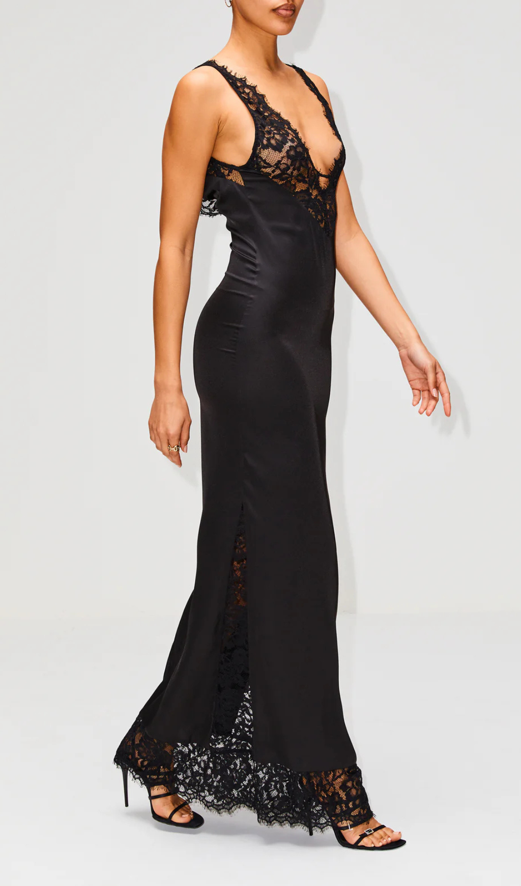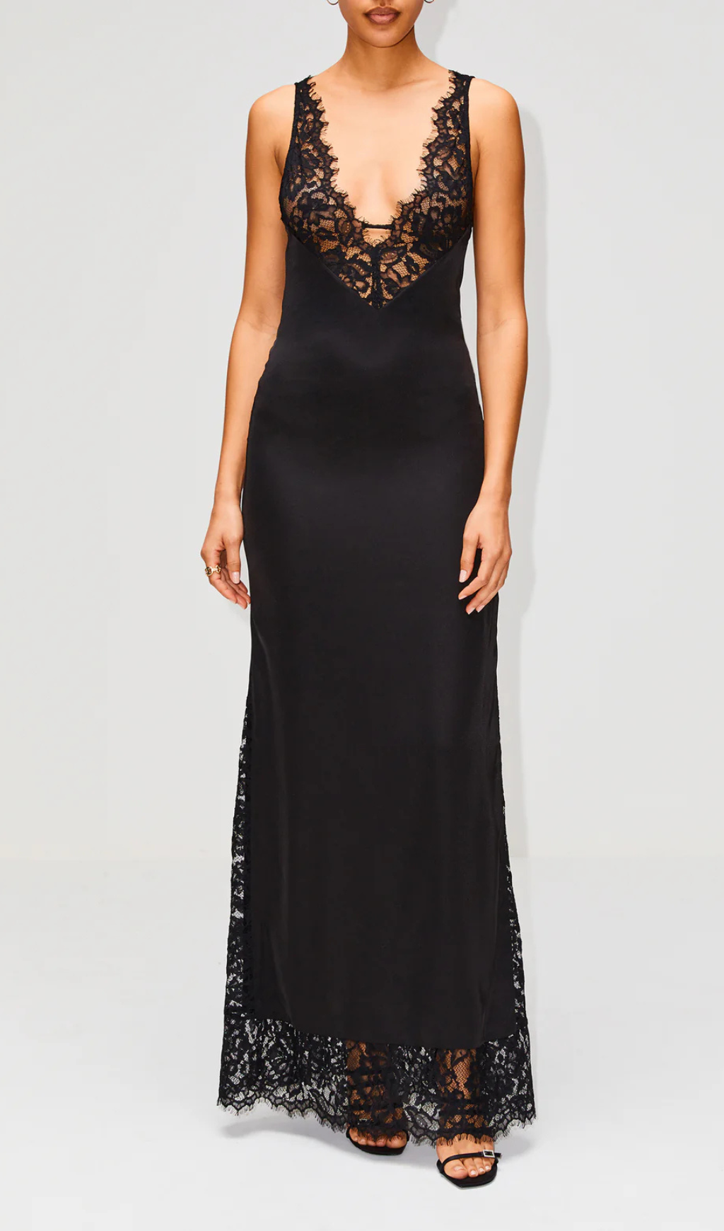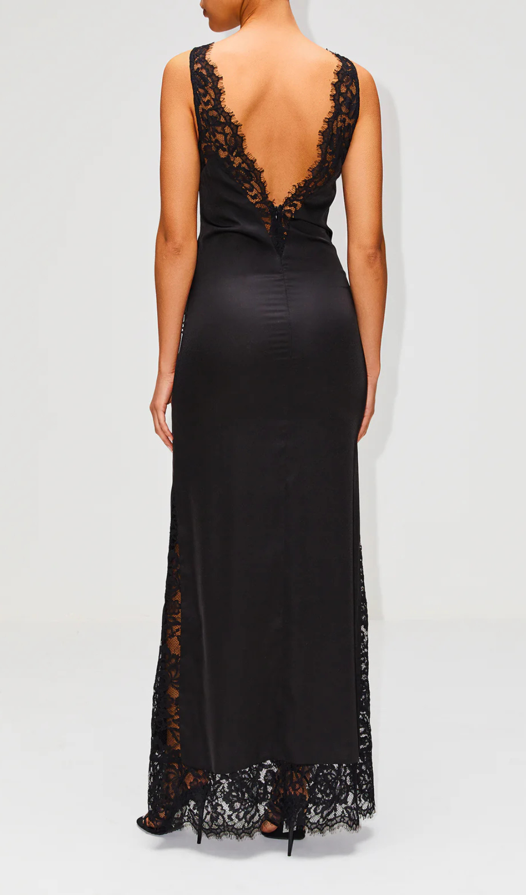 AKAKO BLACK LACE-TRIM V-NECK DRESS