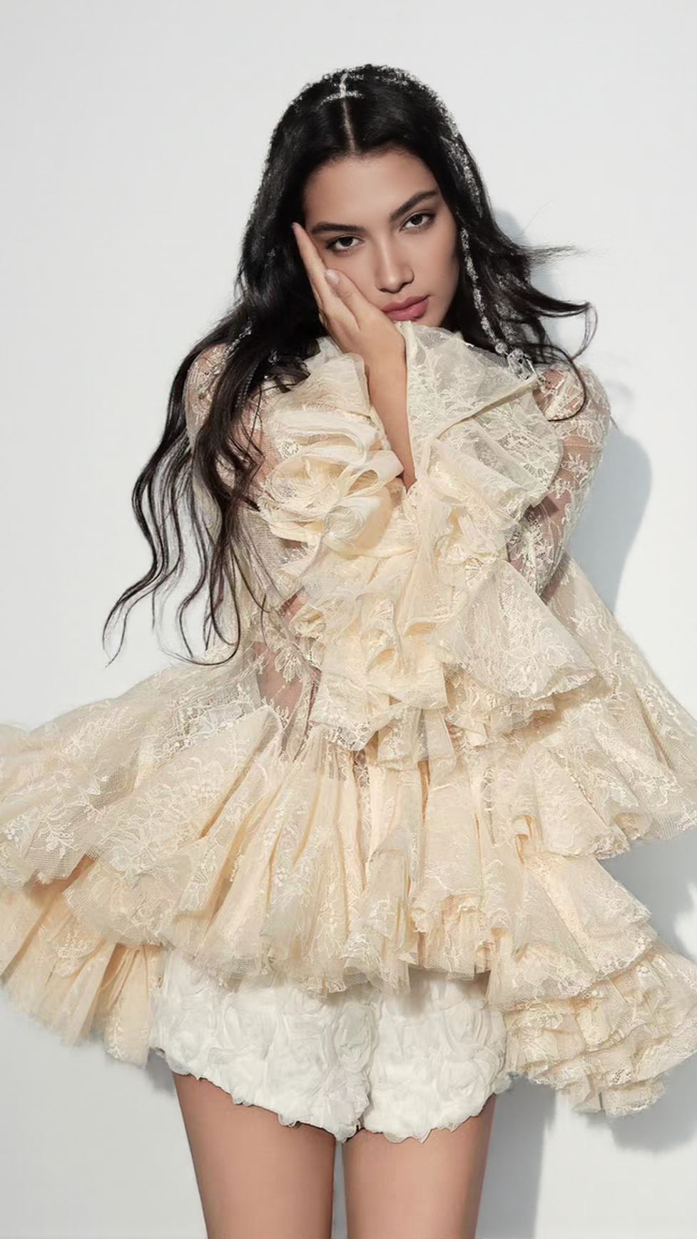 Elevate your style with this lace trumpet sleeve shirt and shorts two-piece set. The delicate see-through lace adds a touch of elegance and allure, while the trumpet sleeves bring a unique, fashionable flair. Perfect for showcasing a sexy yet sophisticated temperament, this set offers both comfort and confidence for any occasion.