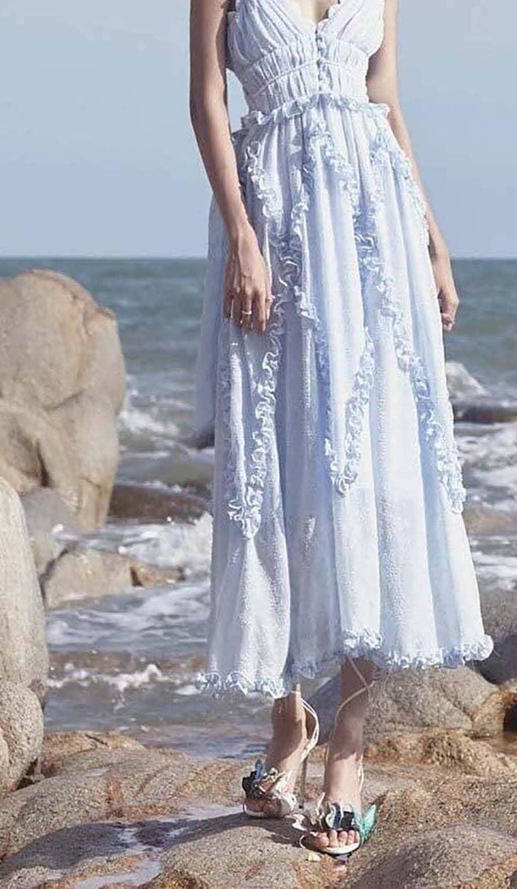 LACE-UP BACKLESS MIDI DRESS IN BLUE