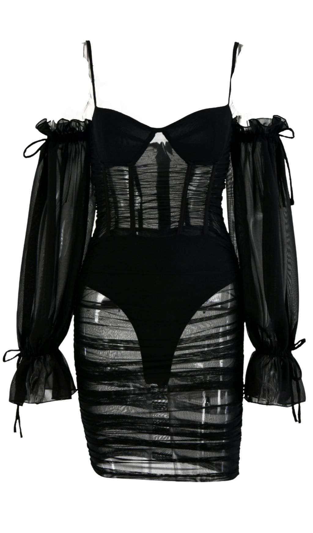 WHITE LANTERN SLEEVE TUBE DRESS