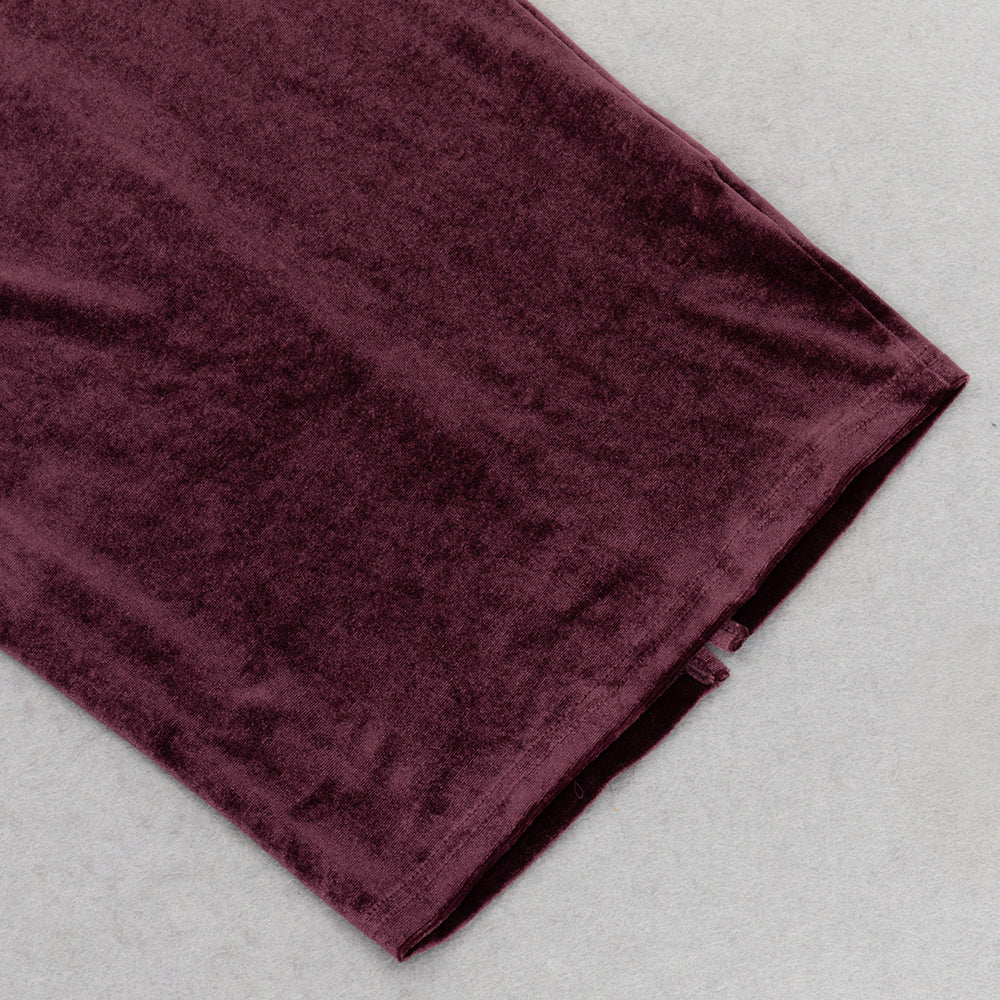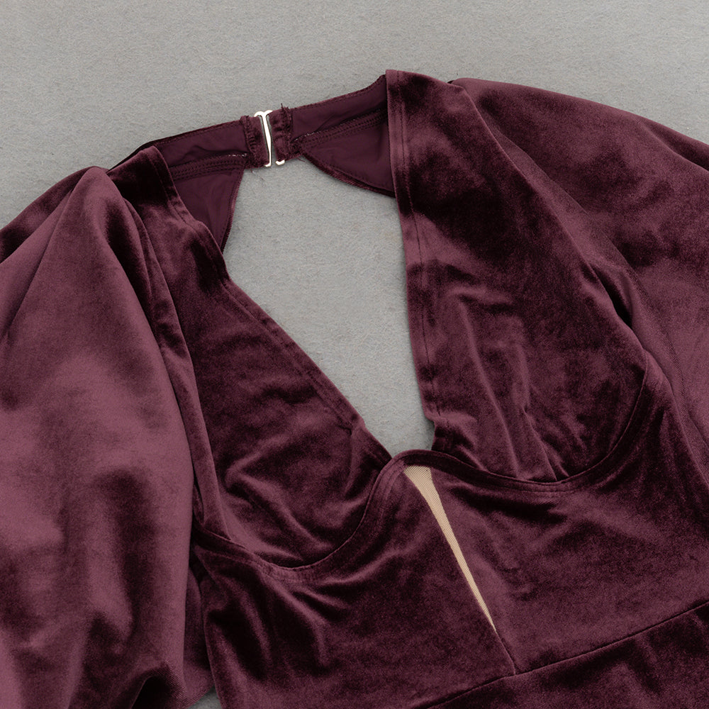lantern sleeve velvet maxi dress in burgundy