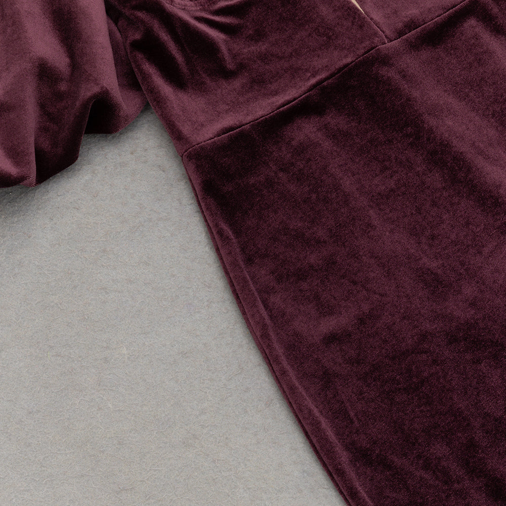 Stand out at your next event in our velvet maxi dress with lantern sleeves (because regular sleeves just won't cut it). The rich burgundy color is sure to turn heads, while the flowy silhouette ensures comfort and style all night long. So go ahead, make an entrance.