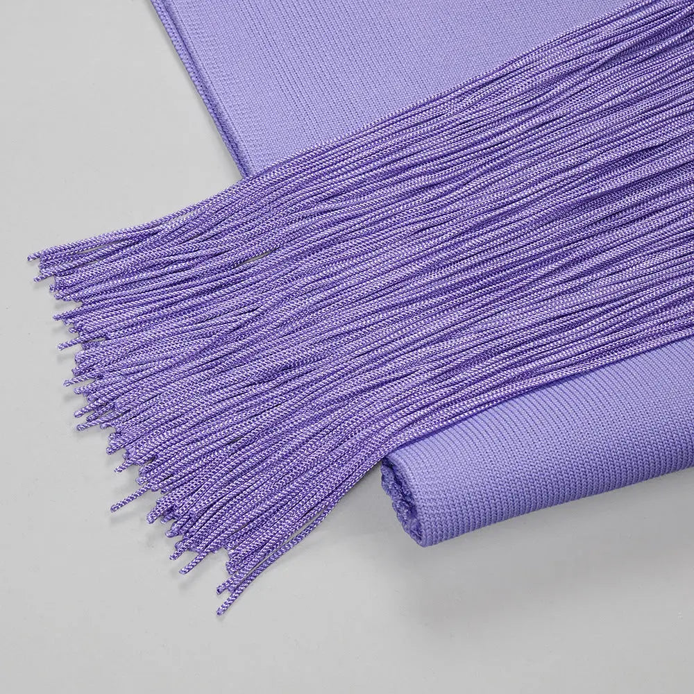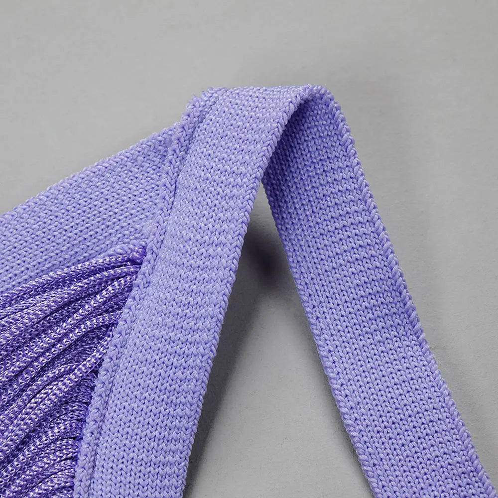 PURPLE HALTER TASSEL BACKLESS MINI DRESS