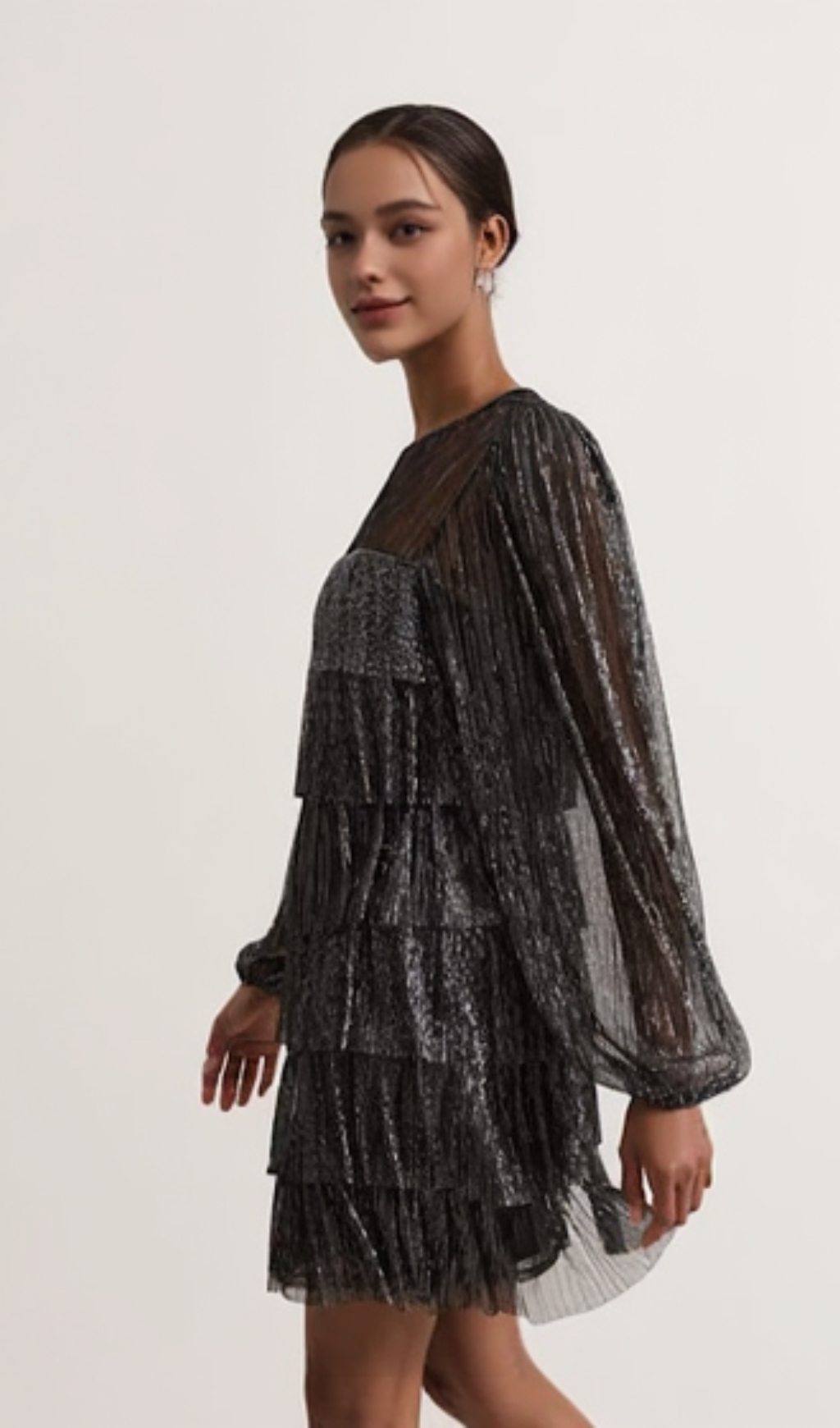 layer chiffon puff mini dress in black