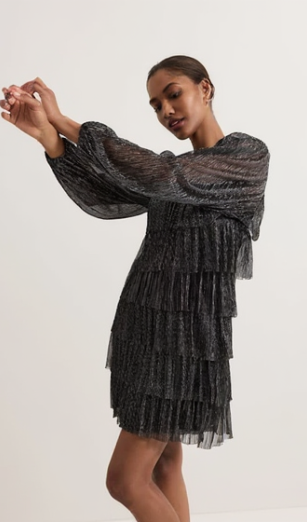 This layer chiffon puff mini dress in black is expertly designed with multiple layers for a delicate and elegant look. Made with soft and flowy chiffon fabric, it features puff sleeves for a touch of volume and femininity. Perfect for any occasion, this dress will make you feel beautiful and confident.
