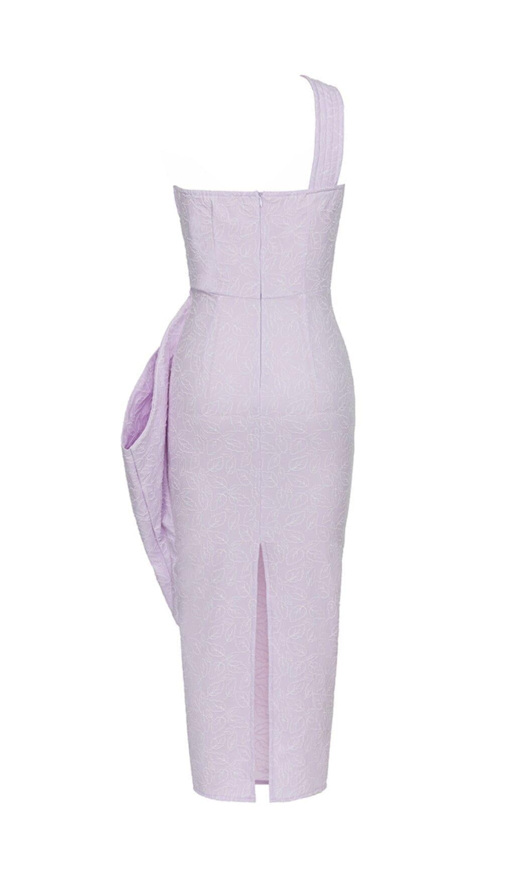 LEAF EMBROIDERY MIDI DRESS IN PURPLE