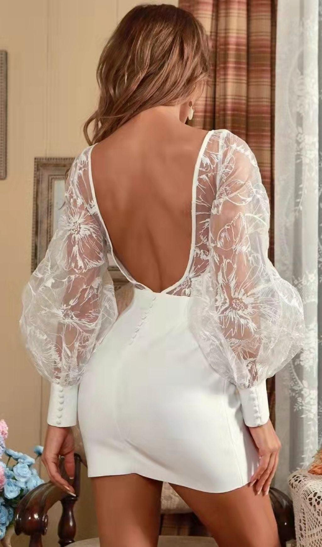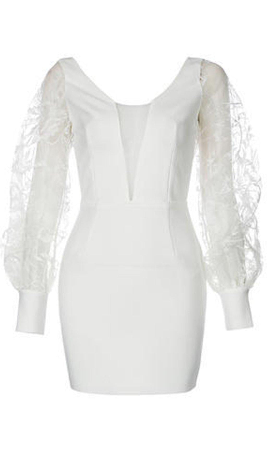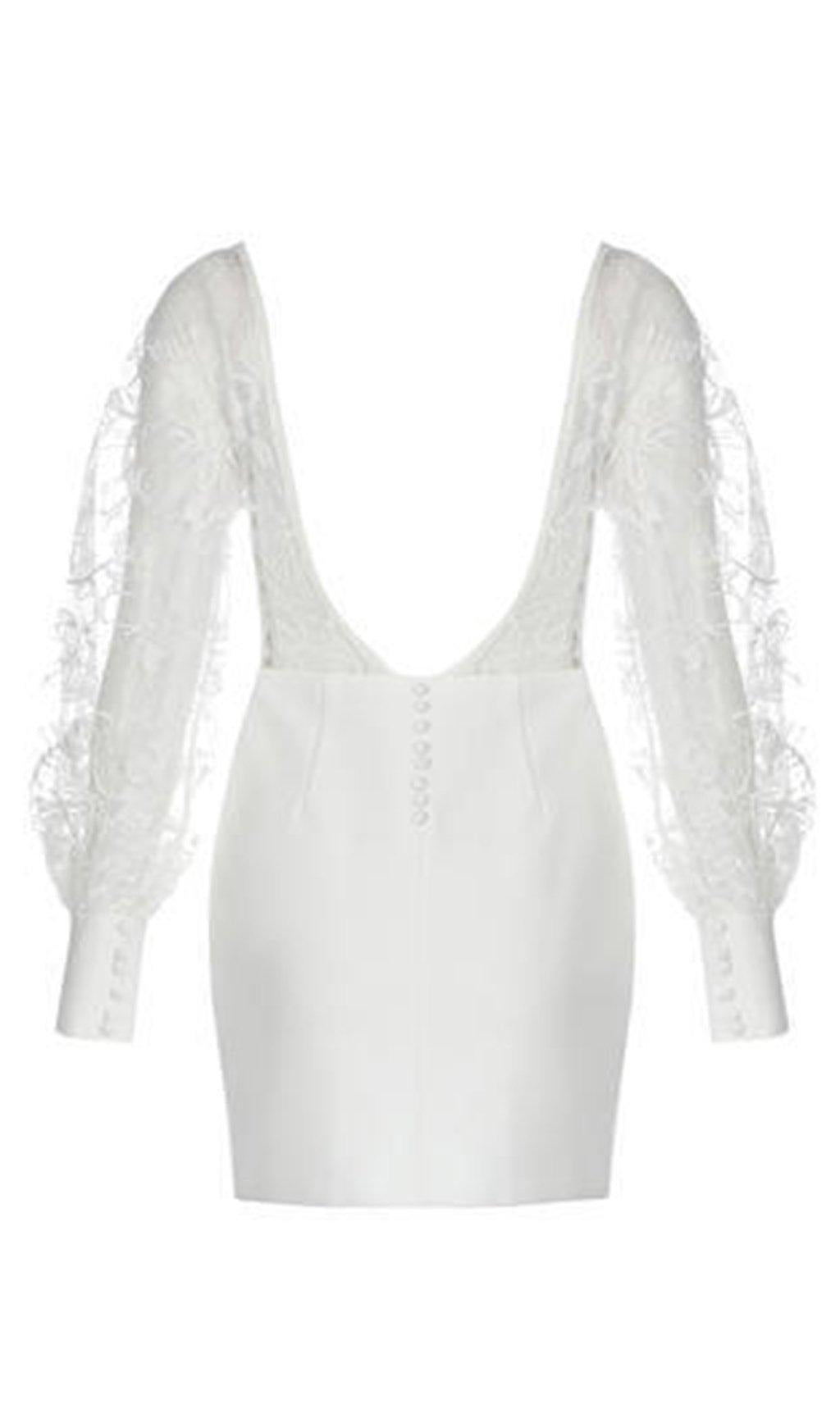 WHITE LEAKY BACK LACE STITCHING DRESS
