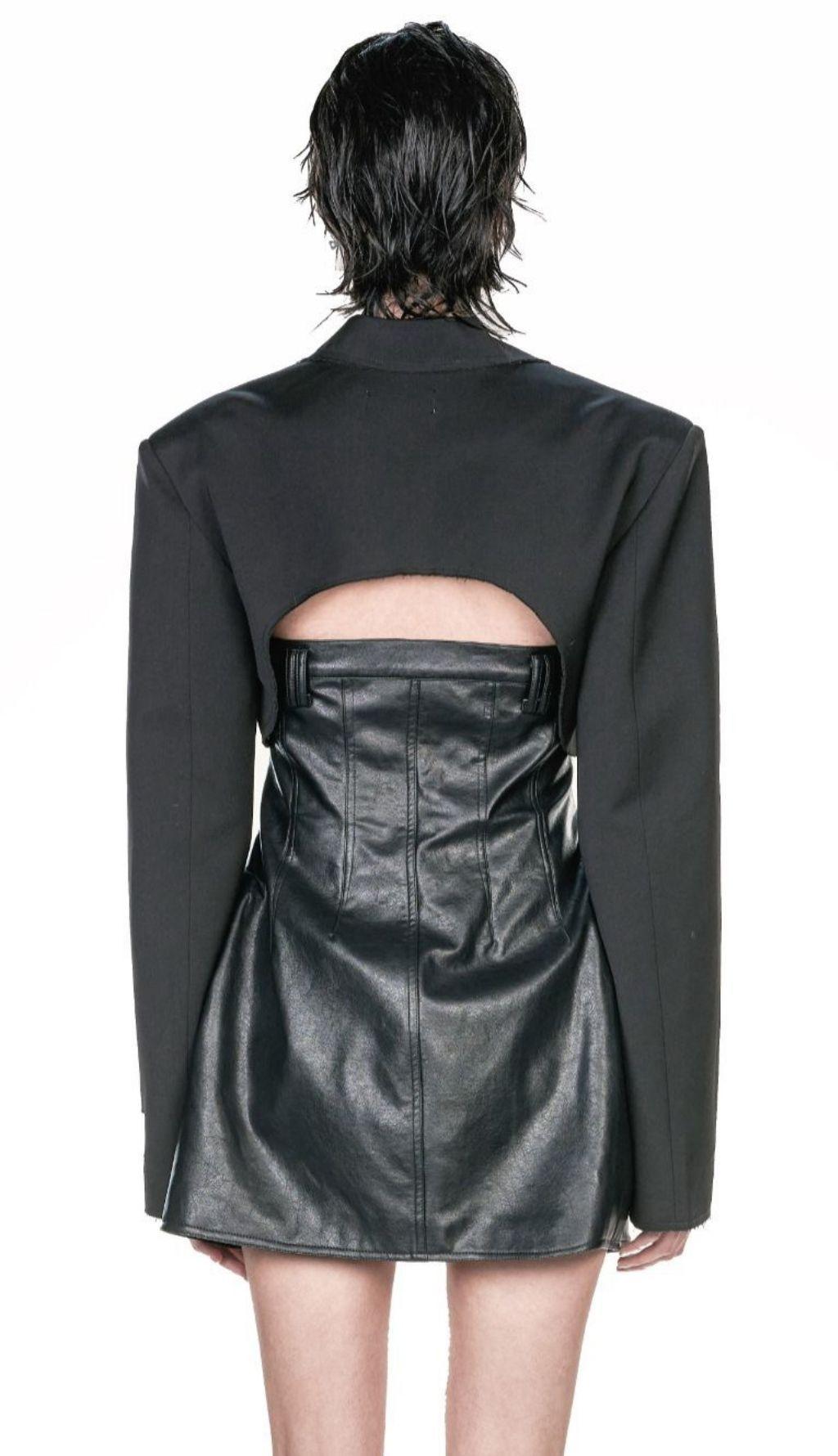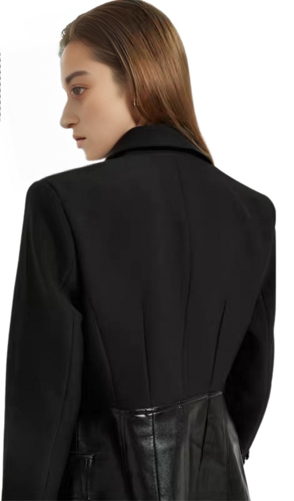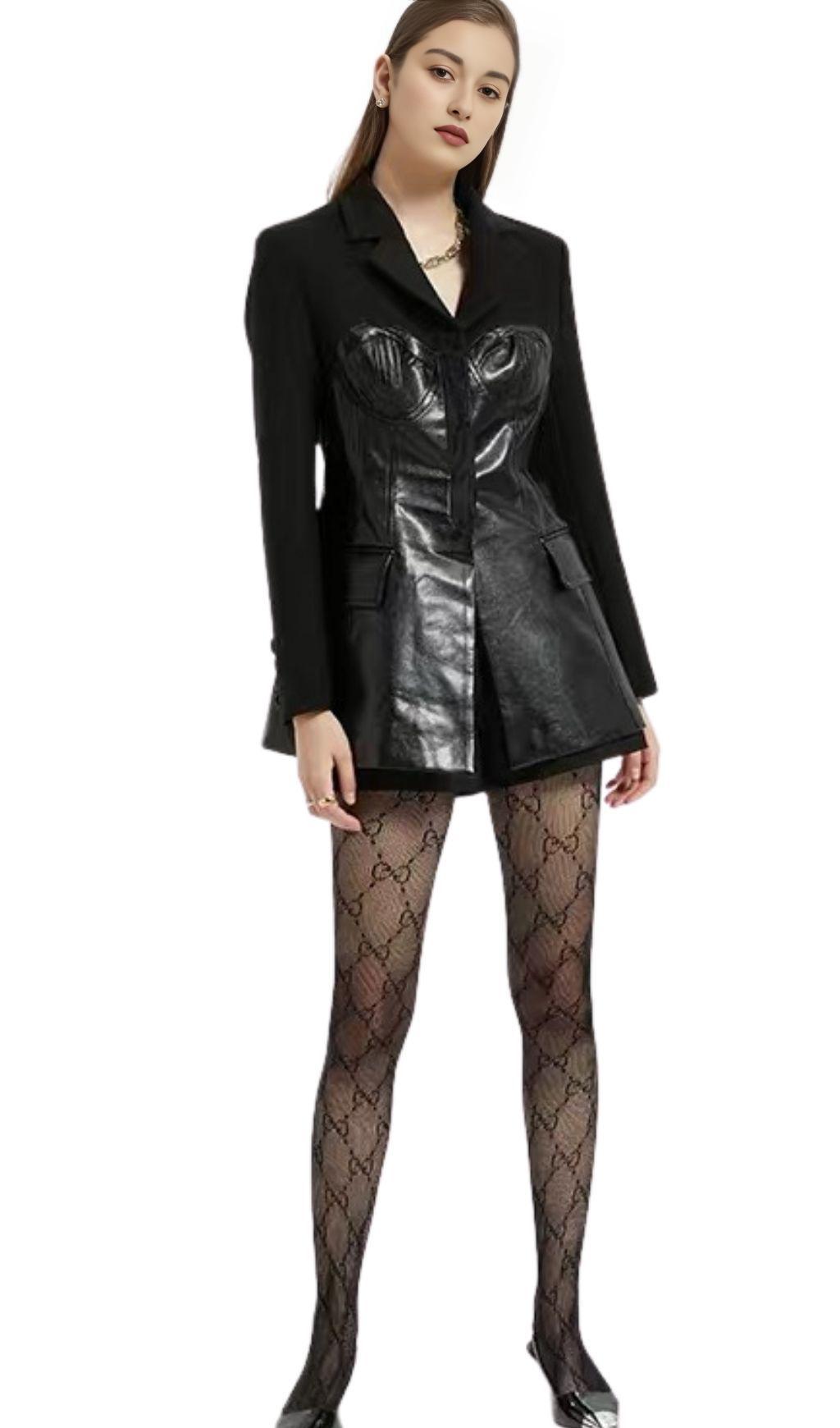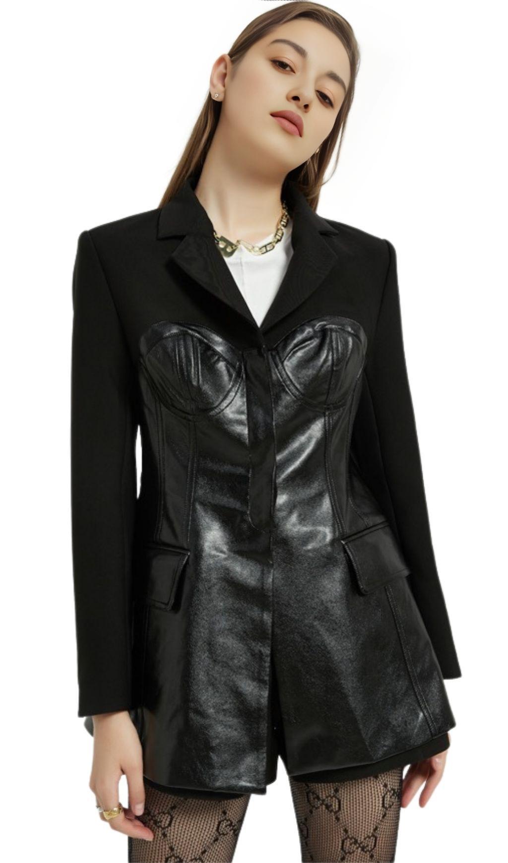 What sets this leather jacket suit apart is its versatility. It can be effortlessly paired with a variety of accessories, making it a perfect choice for any occasion. Enhance your outfit with a necklace or neckband to elevate your style to the next level.