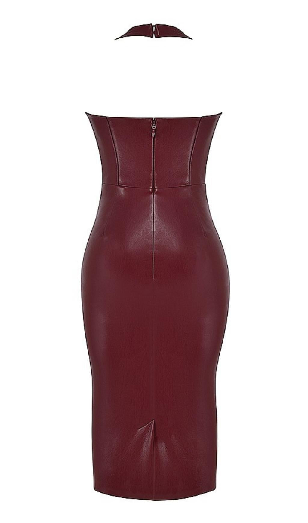 LEATHER MIDI DRESS IN WINE