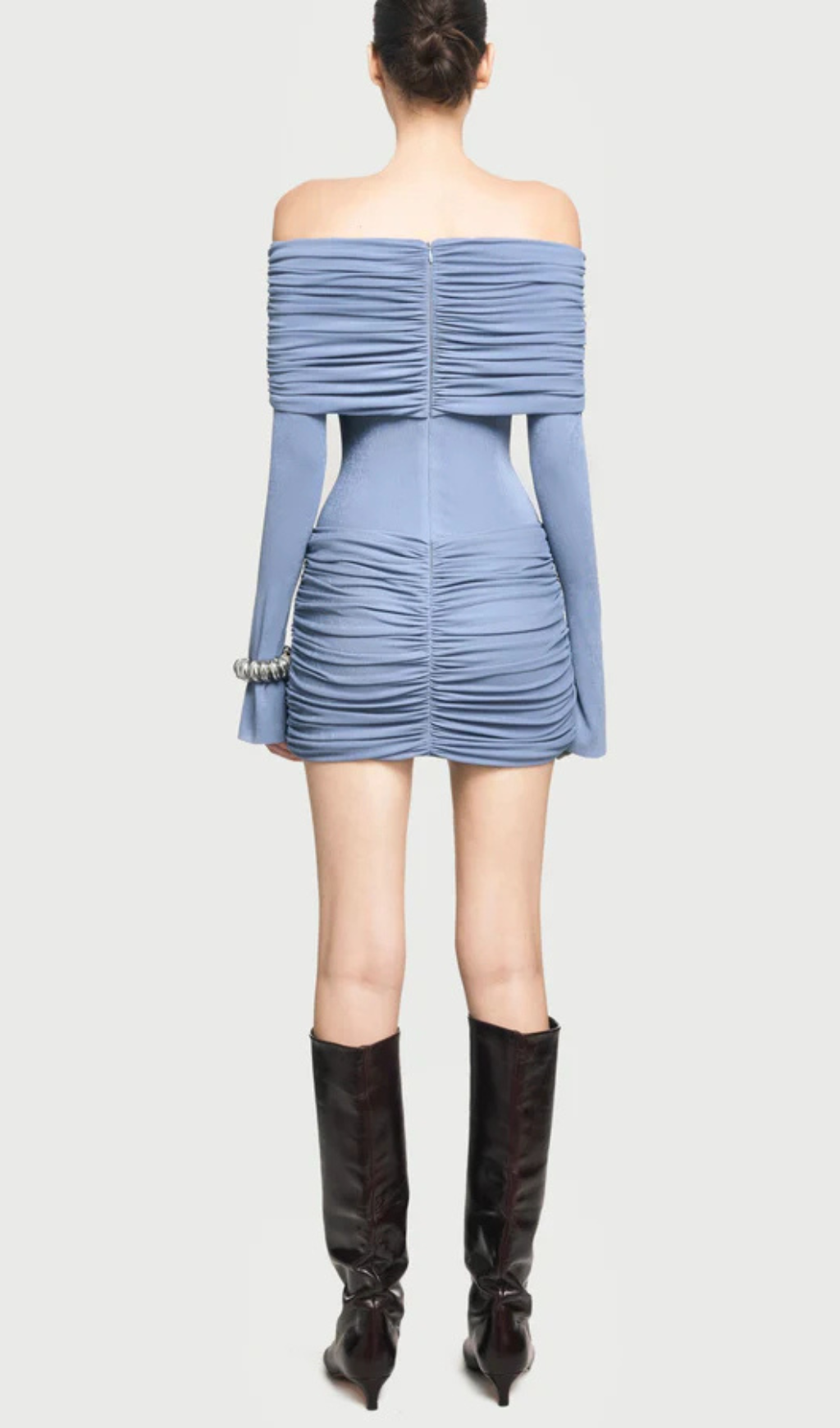 Lekeisha Off Shoulder Draped Mini Dress in Blue