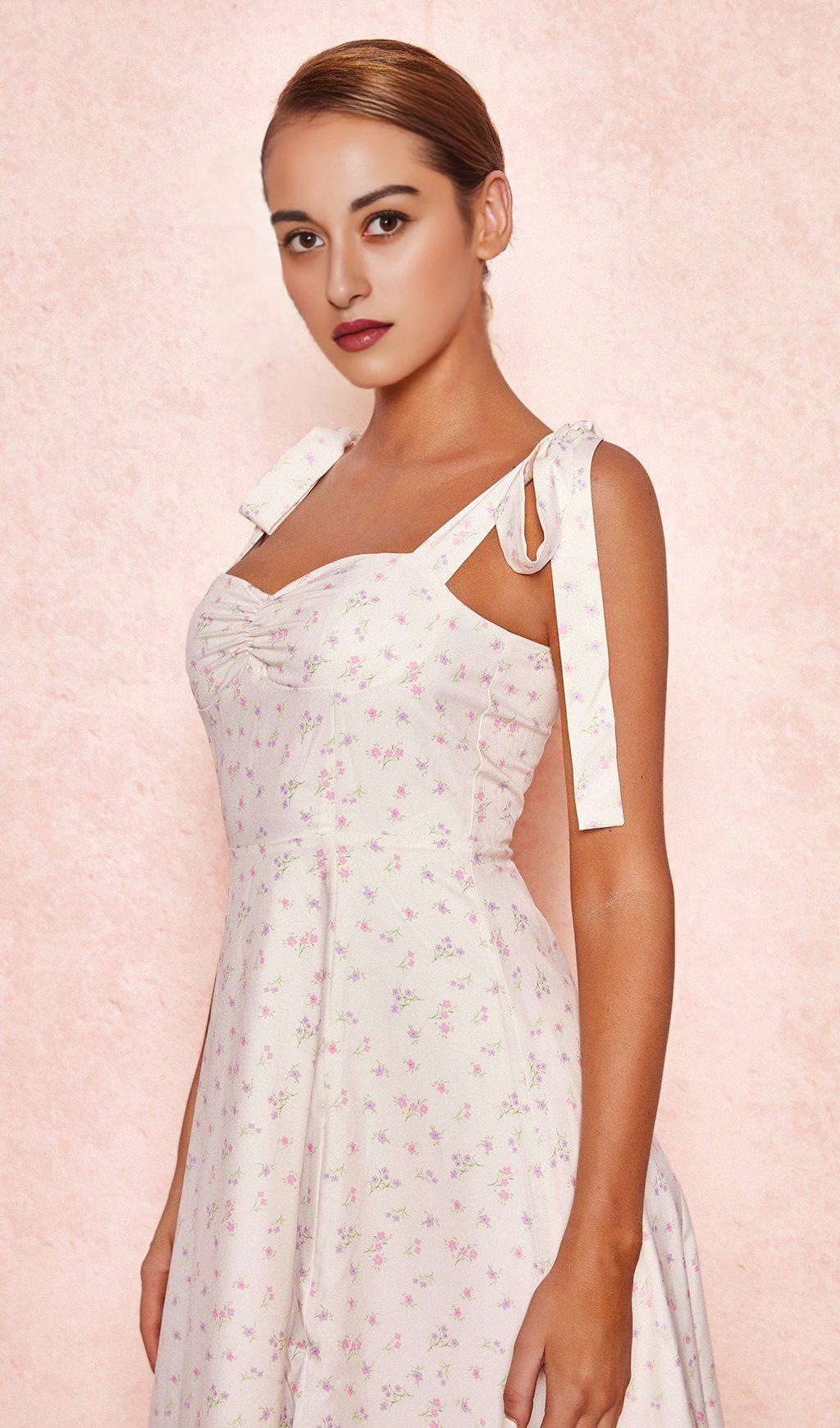 The Lemon Floral Print Midi Sundress is the perfect dress for your summer wardrobe. Made from light and airy crepe fabric, it is both comfortable and stylish. The corset fit to the bodice, boning, and lightly lined cups create a figure-cinching effect that flatters your shape. The delicate and dainty floral print adds a touch of femininity, making it ideal for summer outings.