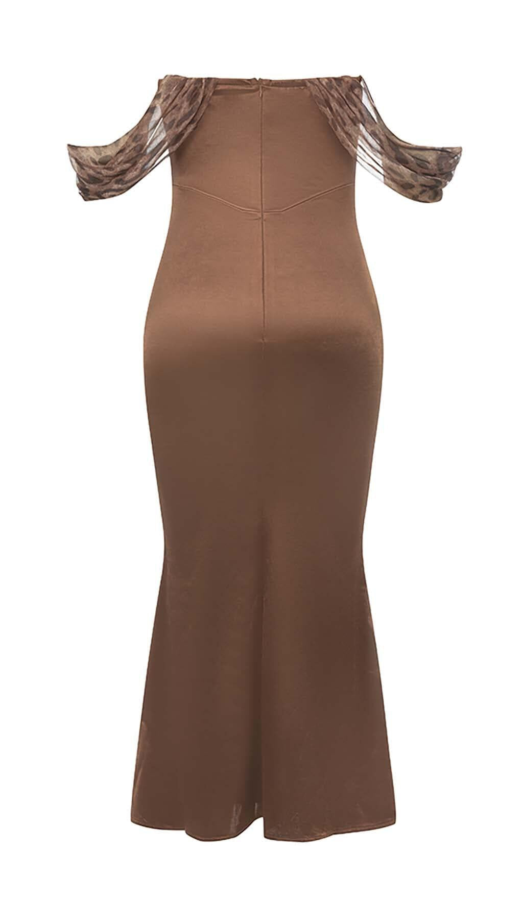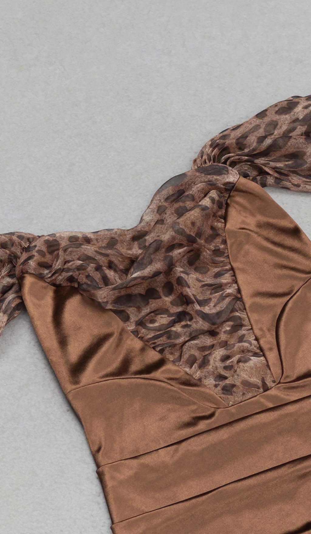 LEOPARD LAYERED MIDI DRESS IN CHOCOLATE BROWN