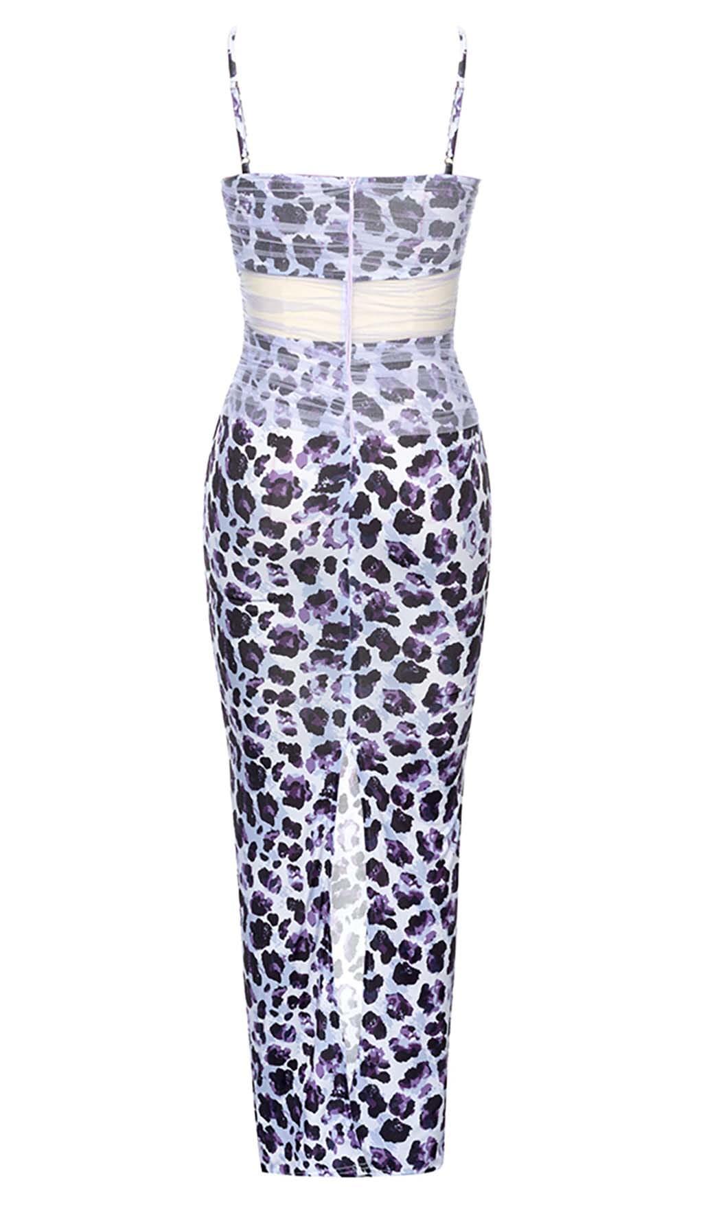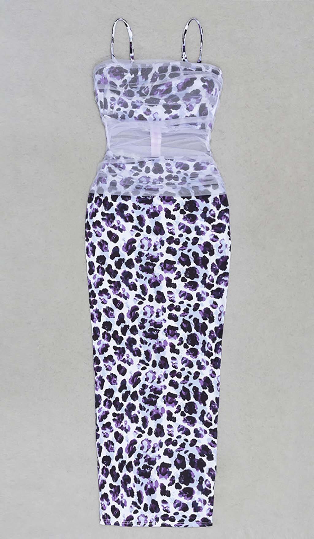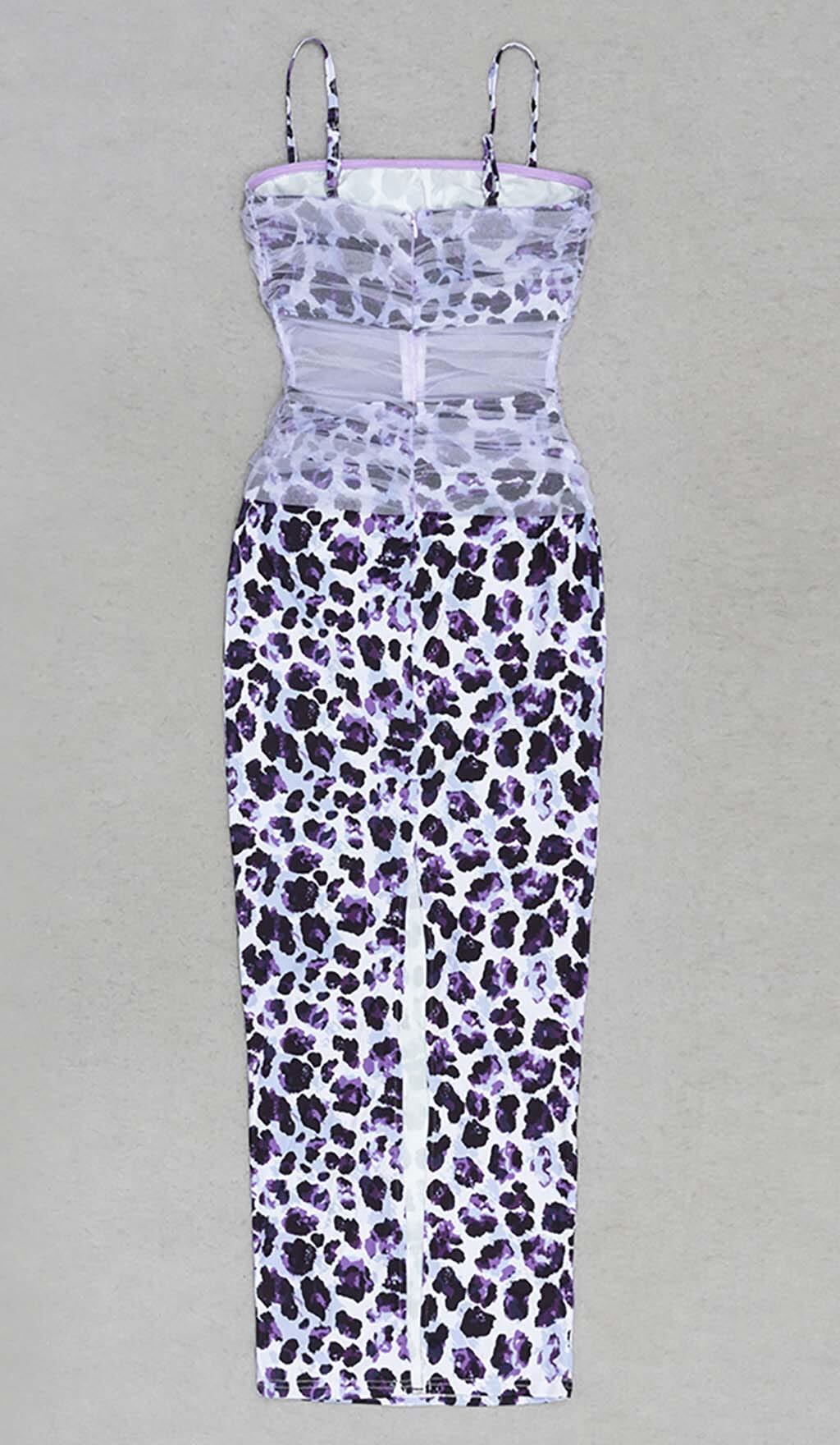 LEOPARD OUT MESH MIDI DRESS IN LAVENDER
