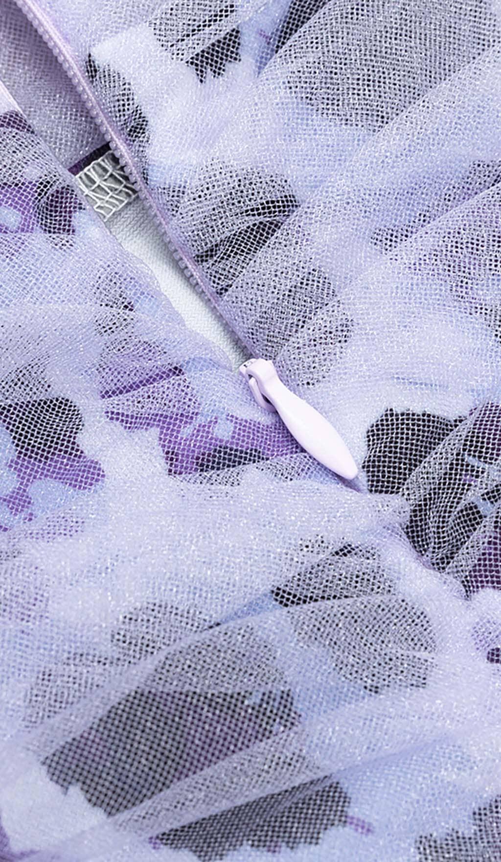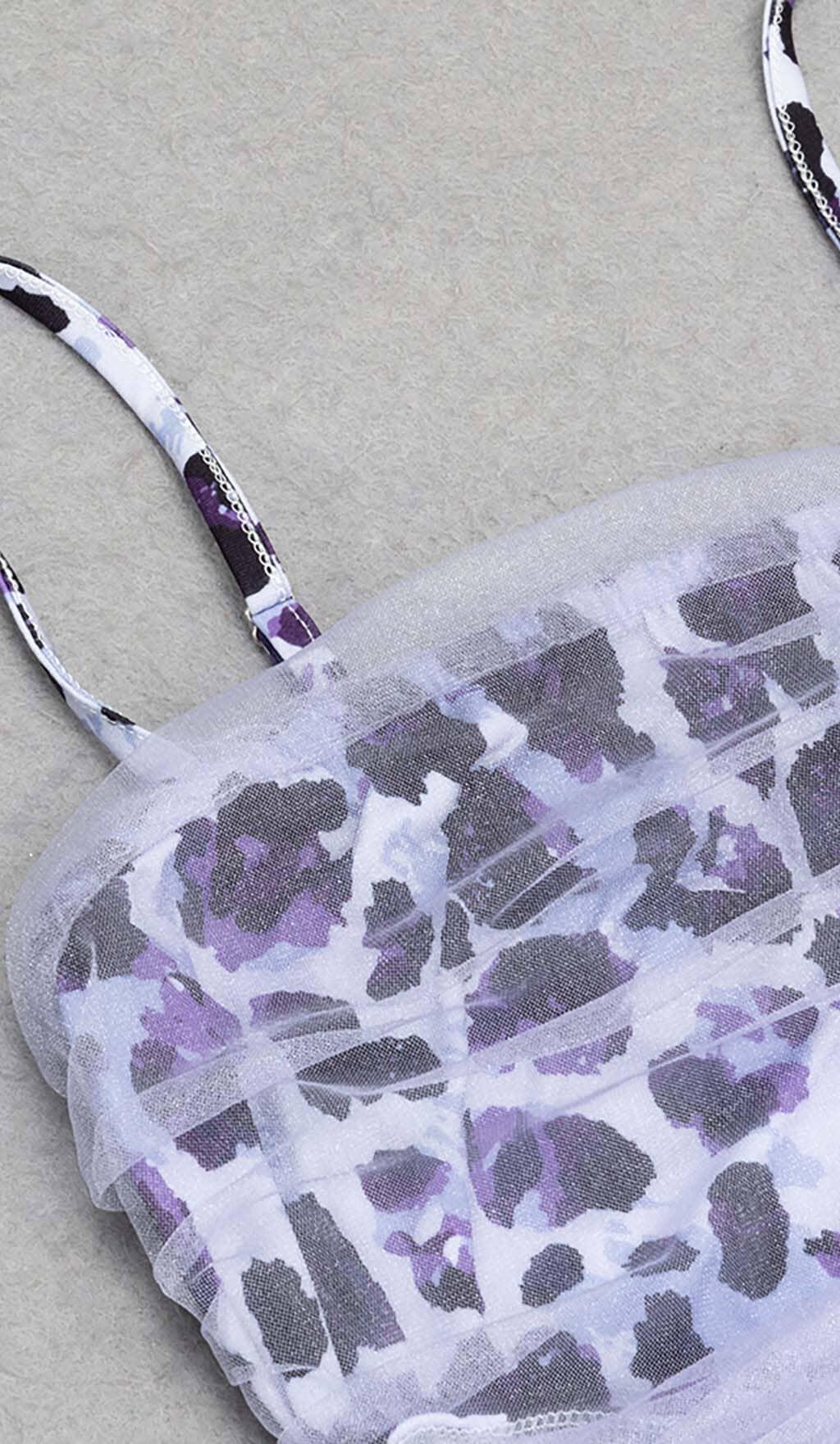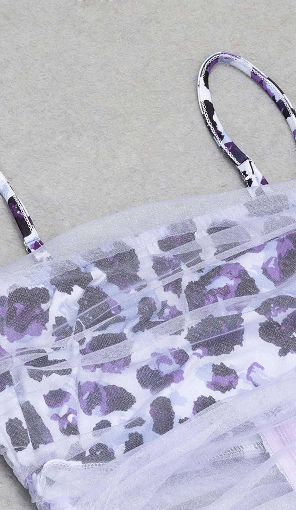 LEOPARD OUT MESH MIDI DRESS IN LAVENDER