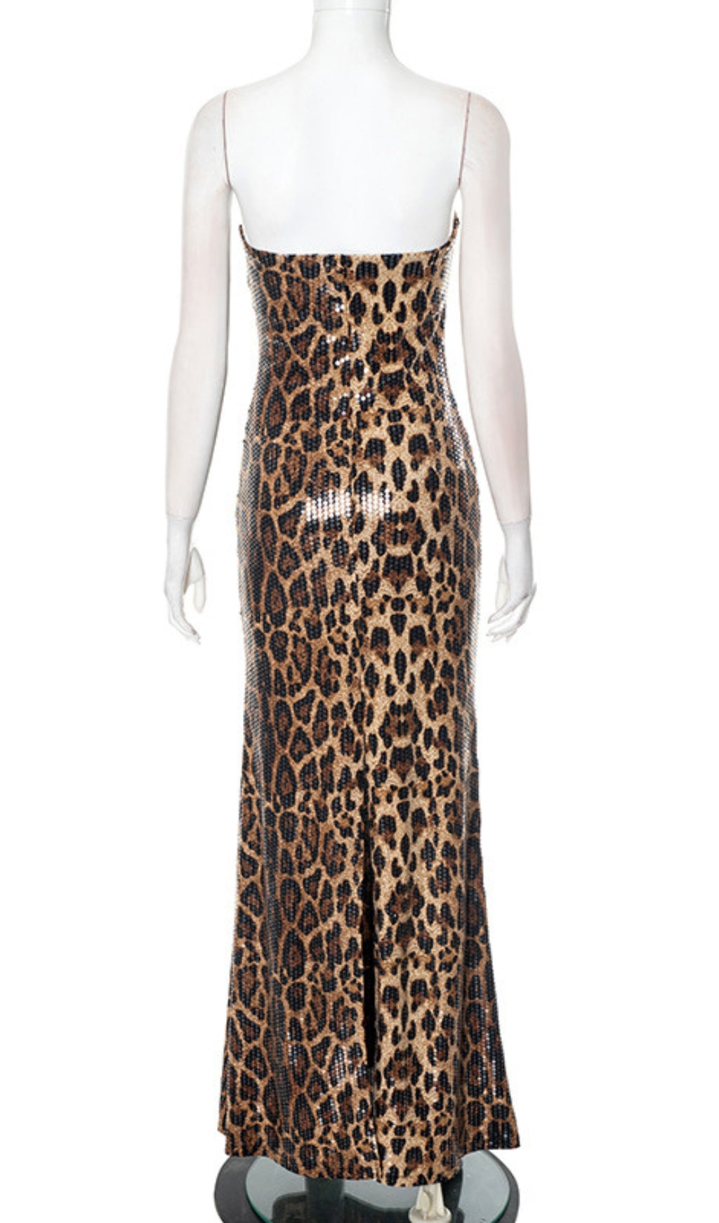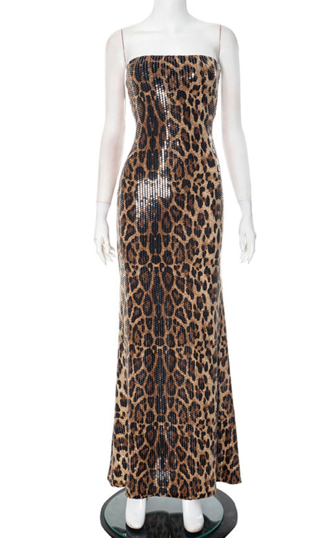 Leopard Print Strapless Sequin Maxi Dress