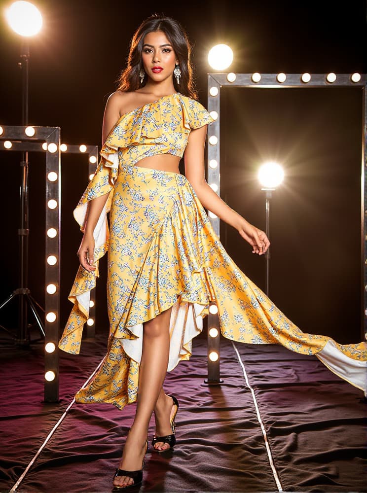Bring feminine style to your wardrobe with the Levana One Shoulder Floral Maxi Dress. Crafted from a lightweight fabric, this maxi dress features a one shoulder neckline and a cascading ruffle along the chest. A subtle floral pattern adds a touch of charm, making this dress the perfect choice for any special occasion.