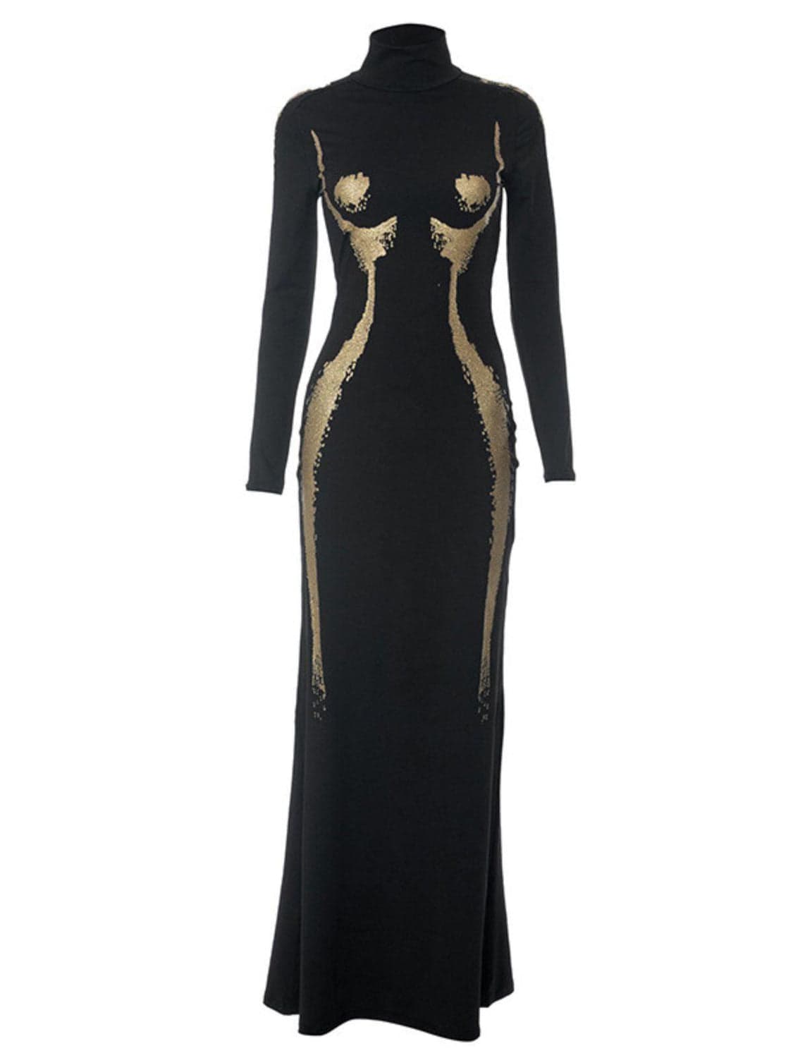 Let your style soar with the Lidal Long Sleeve Body Printed Maxi Dress. Featuring a body printed long sleeve body, this dress is the perfect mixture of comfort and sophistication. With an eye-catching design, its bodycon fit will flatter your figure and make you look and feel glamorous. Experience luxury and style with Lidal.