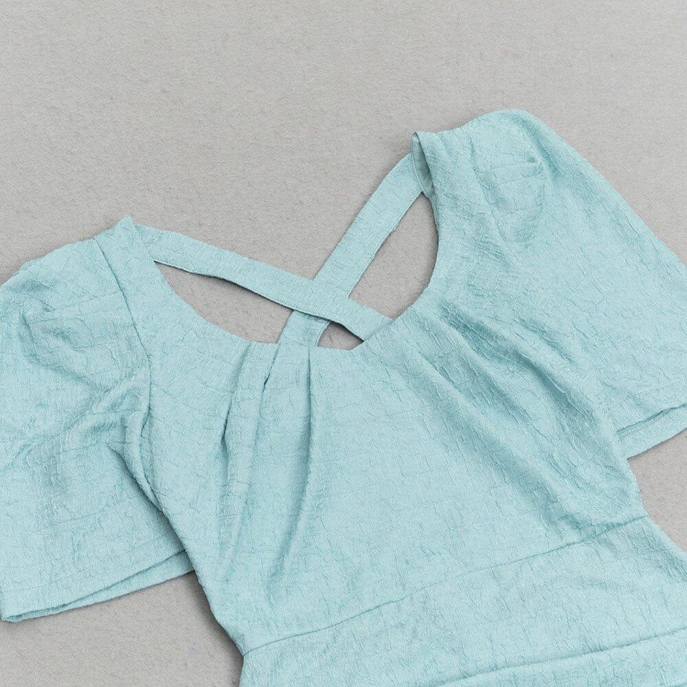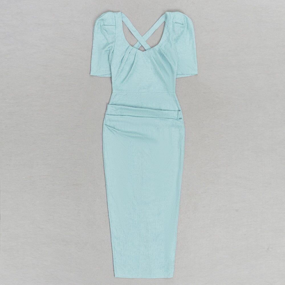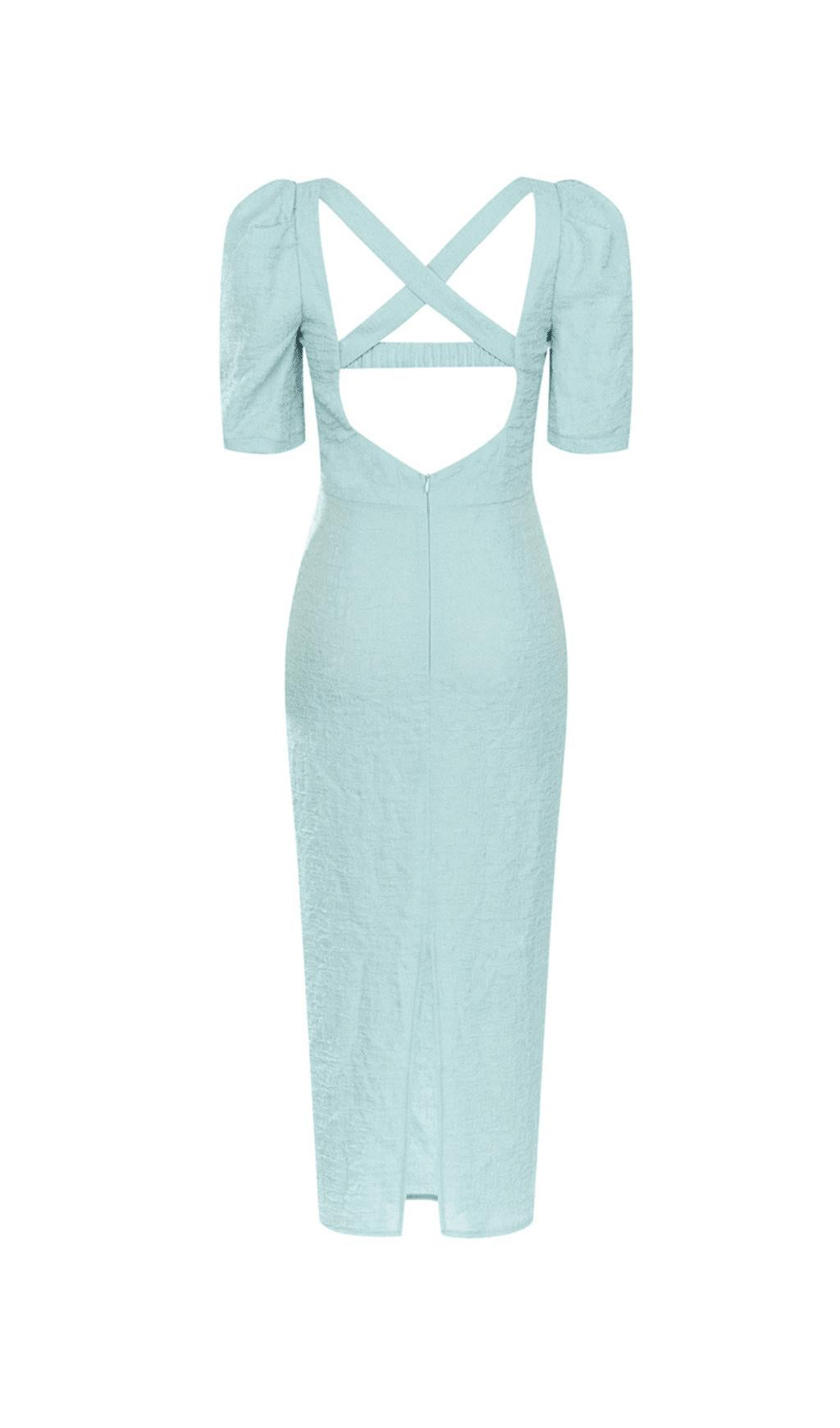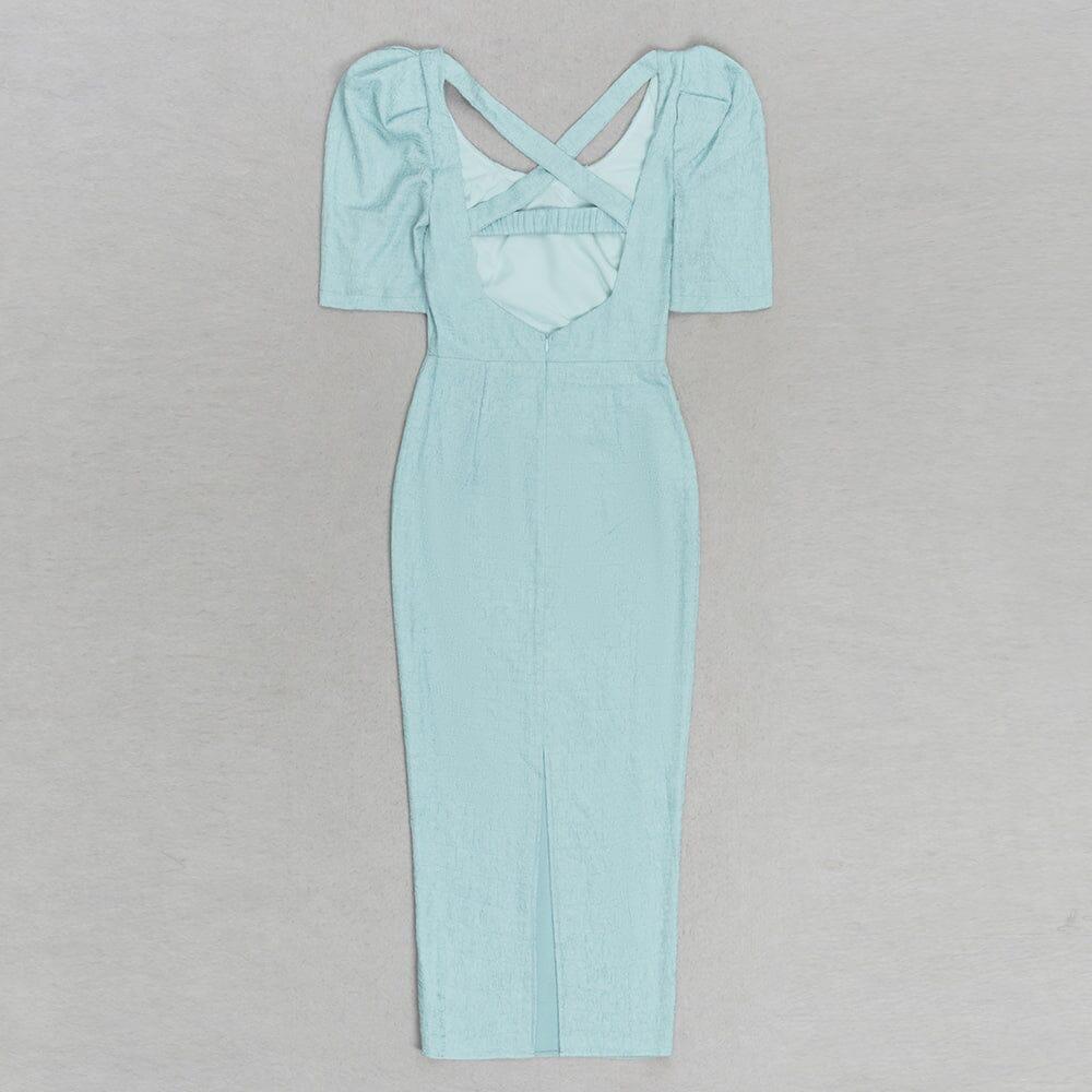 LIGHT GREEN PUFF SLEEVE SPLIT BACK BODYCON MIDI DRESS