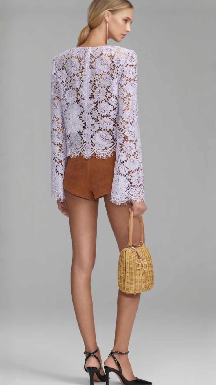 Elevate your wardrobe with the Lilac Lace Fluted Sleeve Top, expertly crafted to combine delicate lace detailing with elegant fluted sleeves. This top offers a refined silhouette that enhances femininity while providing comfortable movement. Its soft lilac hue adds a subtle yet sophisticated touch, making it ideal for both professional settings and stylish casual occasions. Designed for those who appreciate intricate design and quality, this top seamlessly blends classic charm with modern elegance.