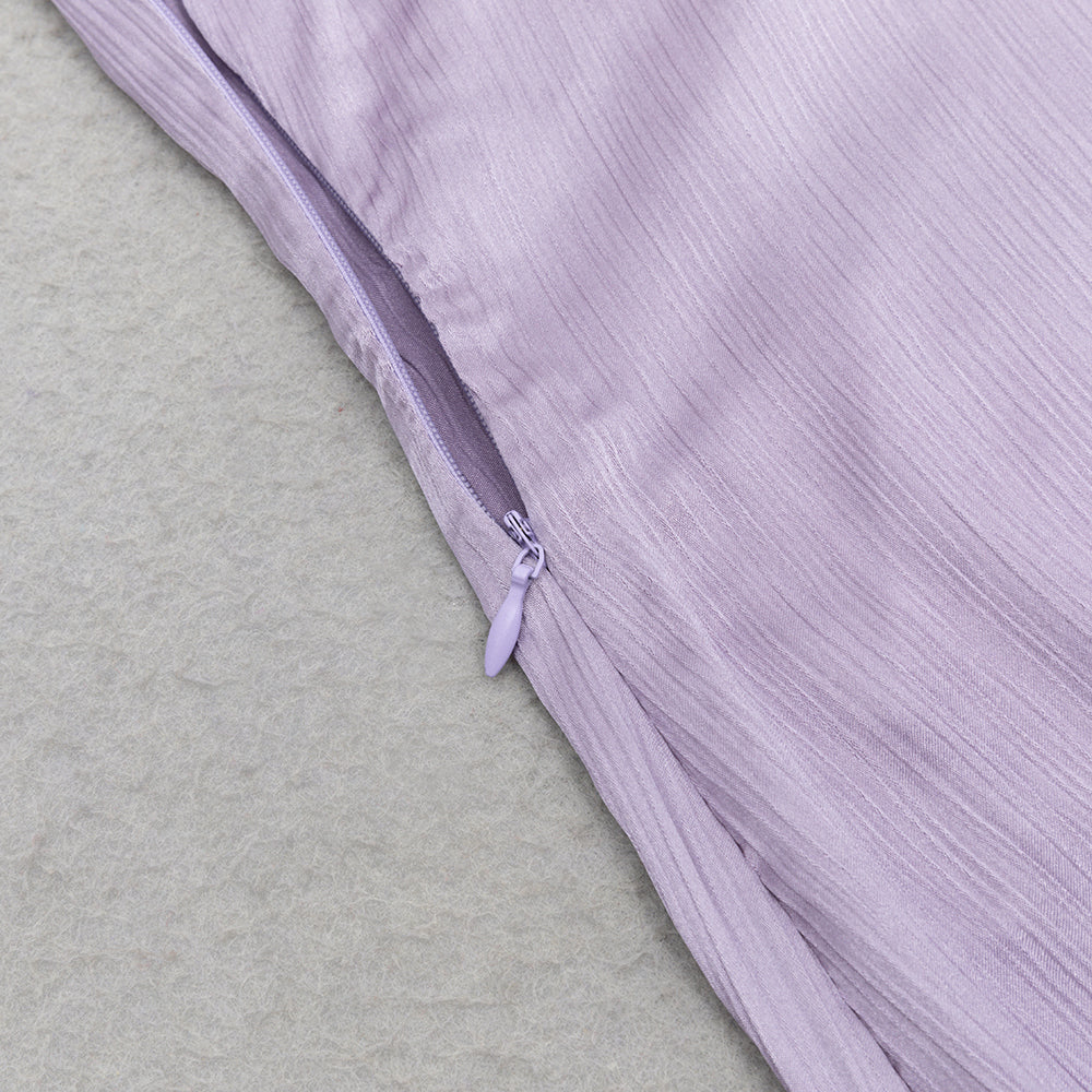 LILAC RUFFLE TRIM ASYMMETRICAL HEM SATIN MIDI DRESS