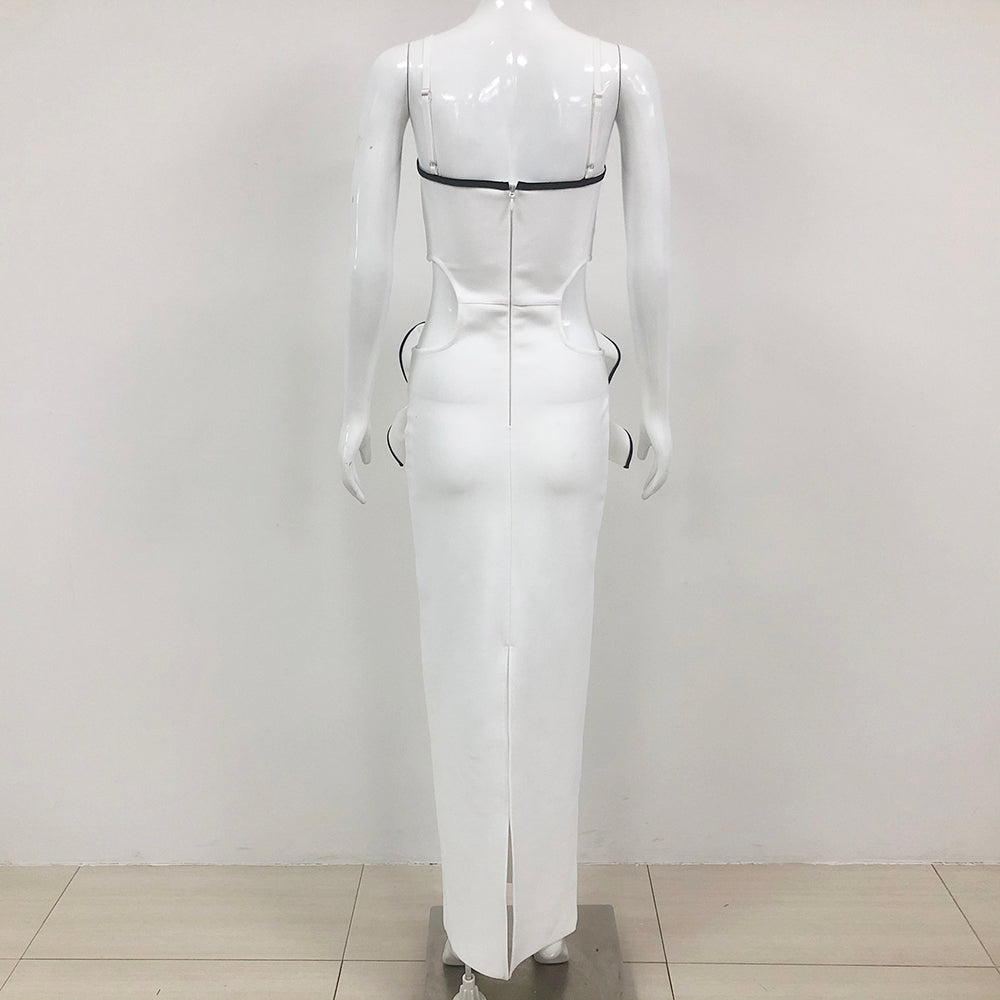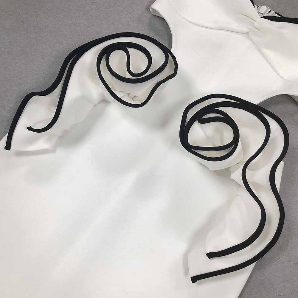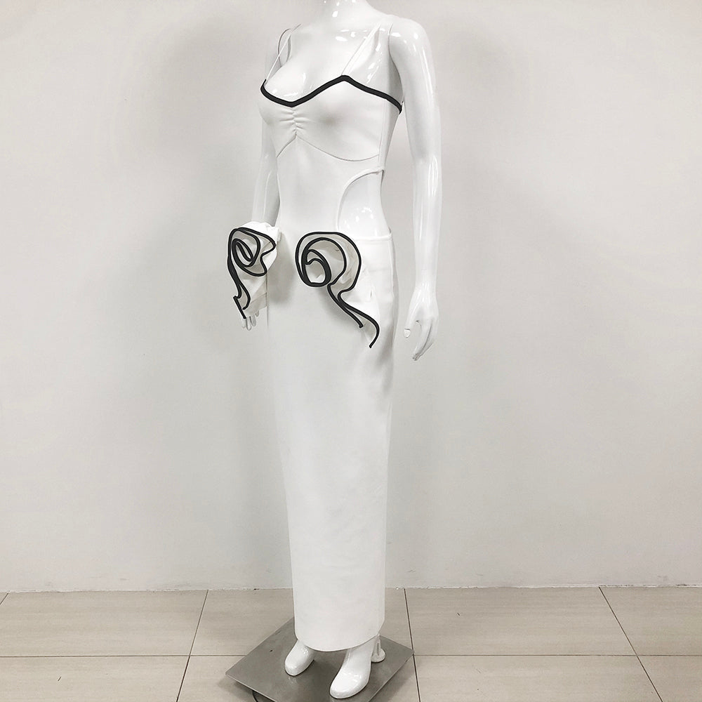 LILLIAN WAIST FLOWER RUFFLE EMBELLISHED CUT OUT MAXI DRESS