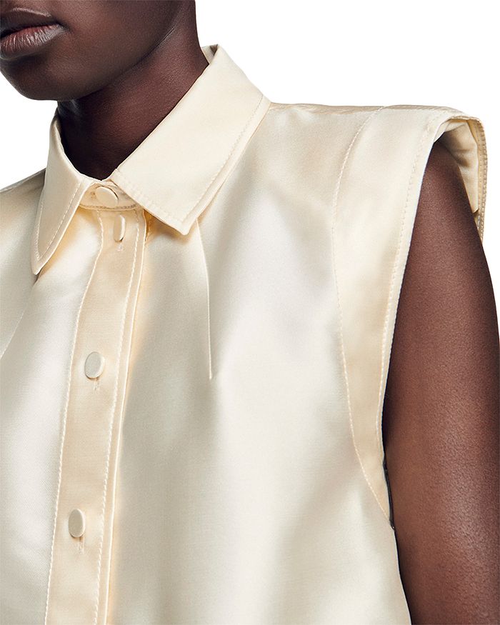 • Sleeveless, extended shoulders