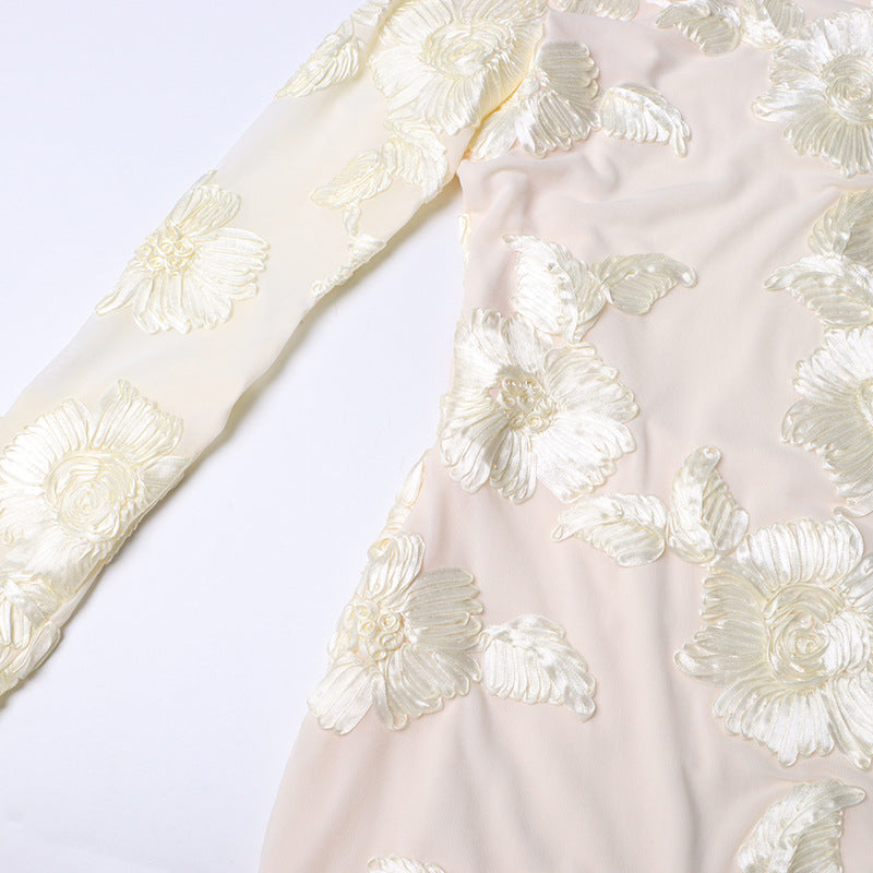 Look stylish and feel comfortable in this Long Sleeve 3D Mesh Flower Mini Dress. The perfect combination of fashion and comfort, this dress features soft 3D mesh fabric with a snug fit for a flattering look. Show off your best features in this dress.