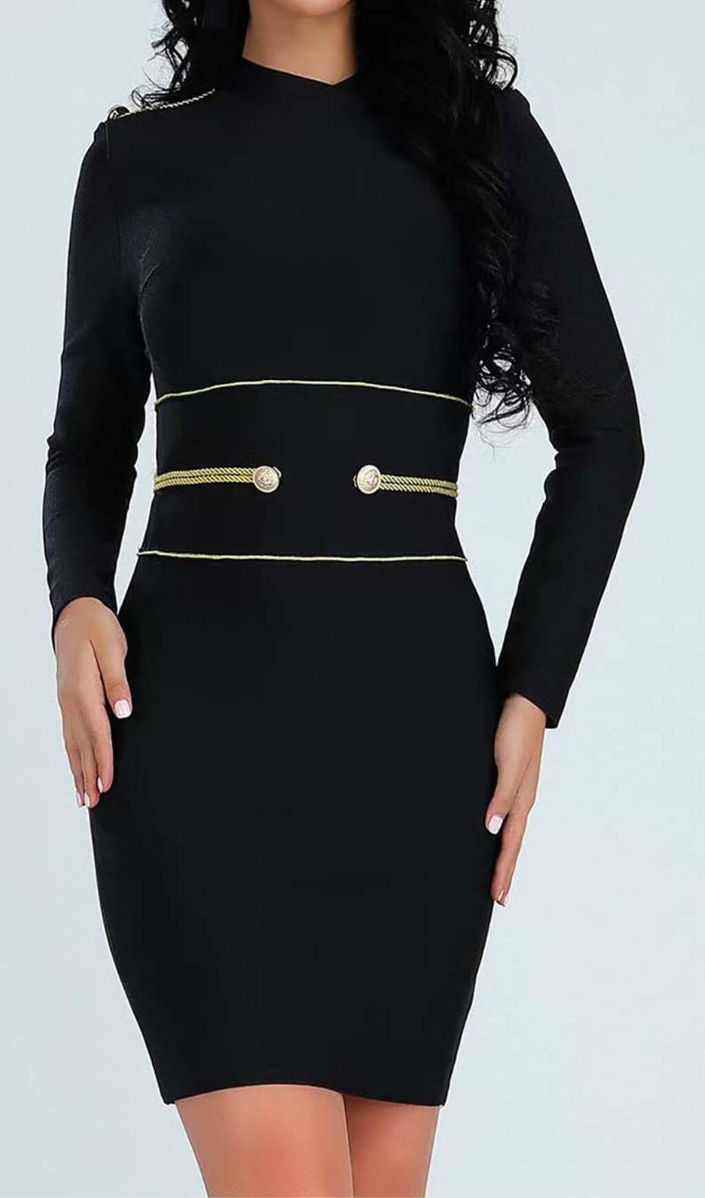 LONG SLEEVE BANDAGE MINI DRESS IN BLACK
