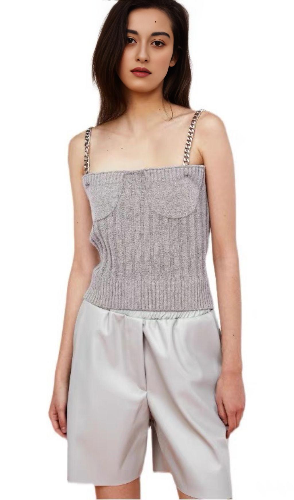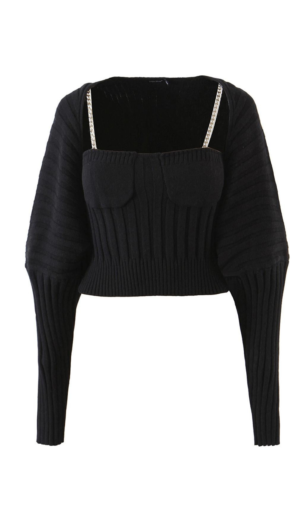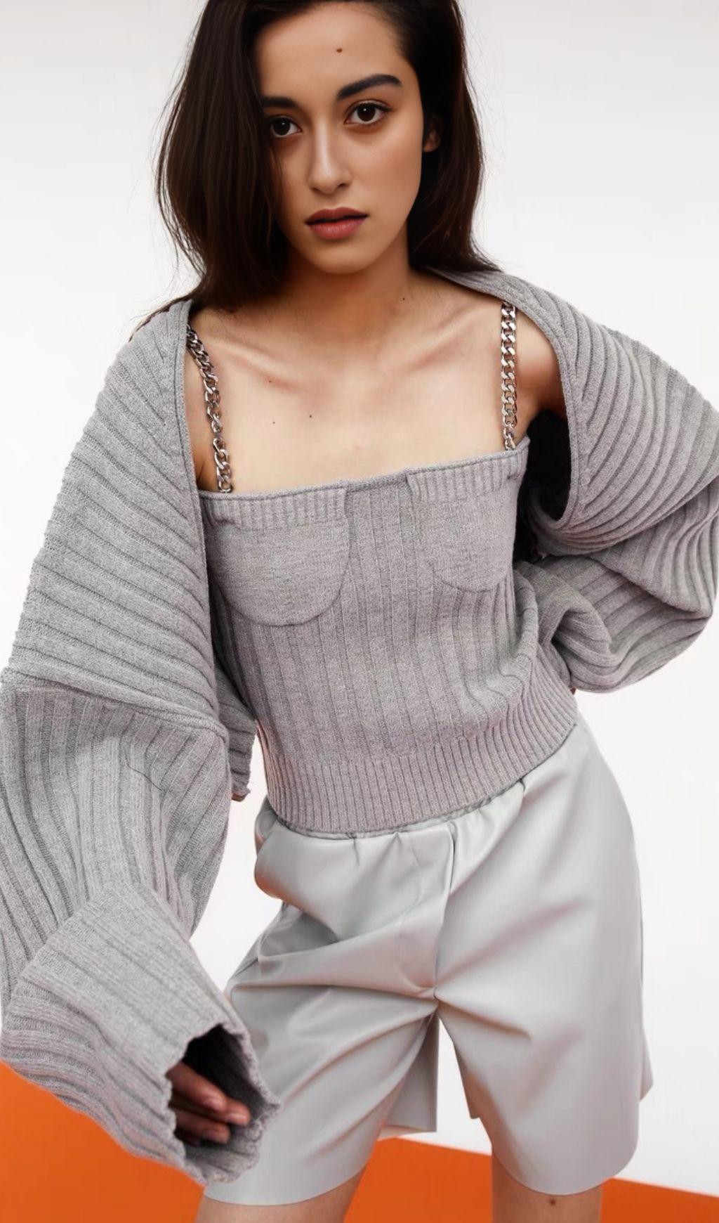 Enhance your wardrobe with our Long Sleeve Camisole with Metal Chain. This unique two-piece long-sleeved cardigan features a slim clothes version that flatters your figure. Made from high-quality cotton, it offers both comfort and durability. Complete your look by pairing it with a stylish necklace or neckband.