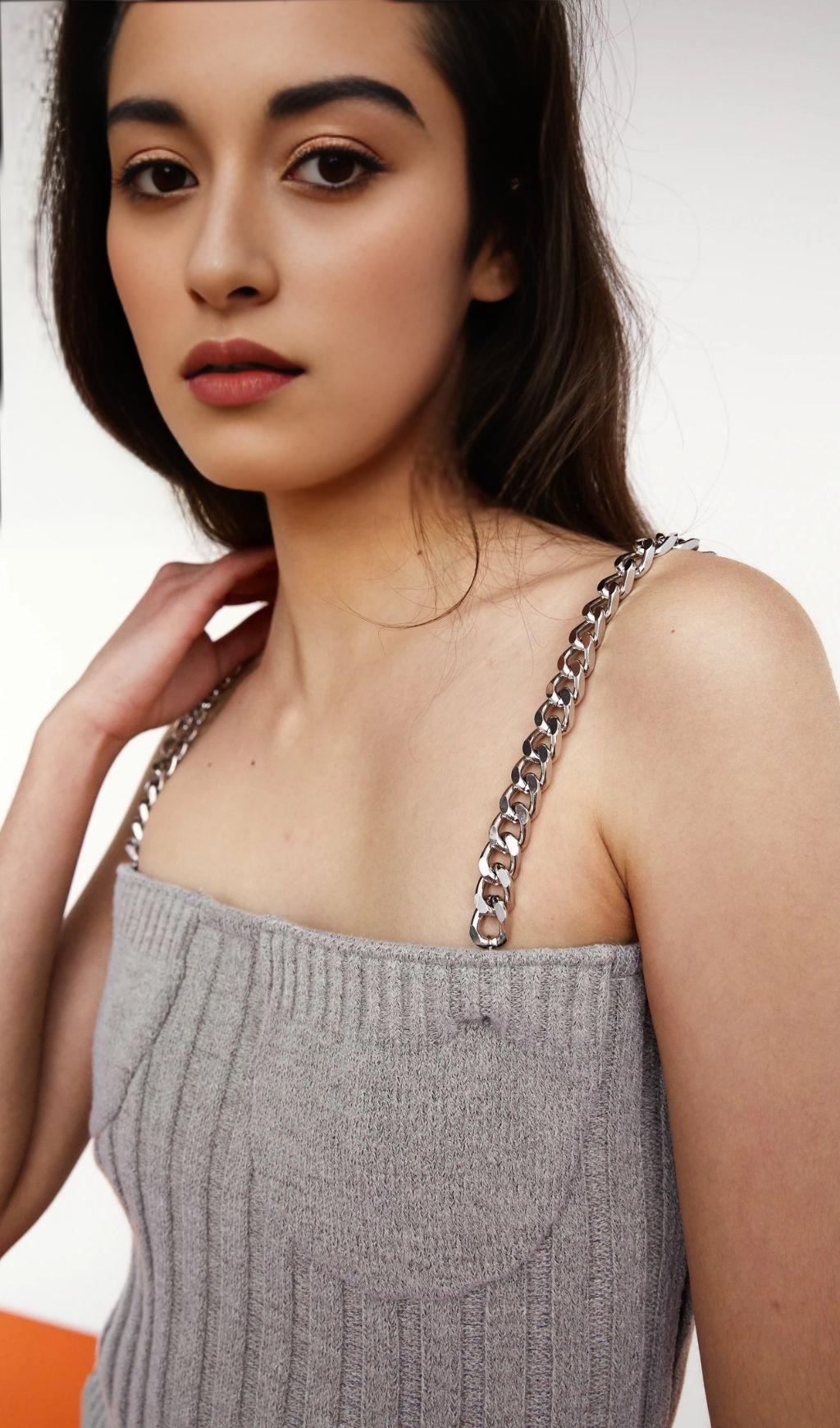 Long sleeve camisole with metal chain.