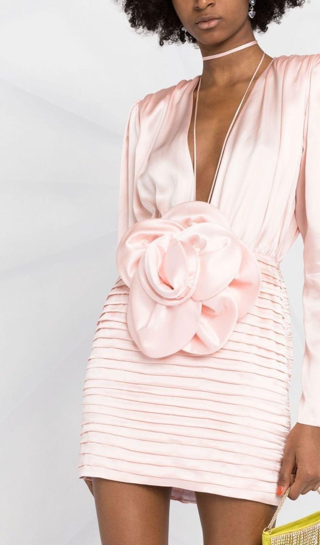 LONG SLEEVE FLOWER MINI DRESS IN PINK