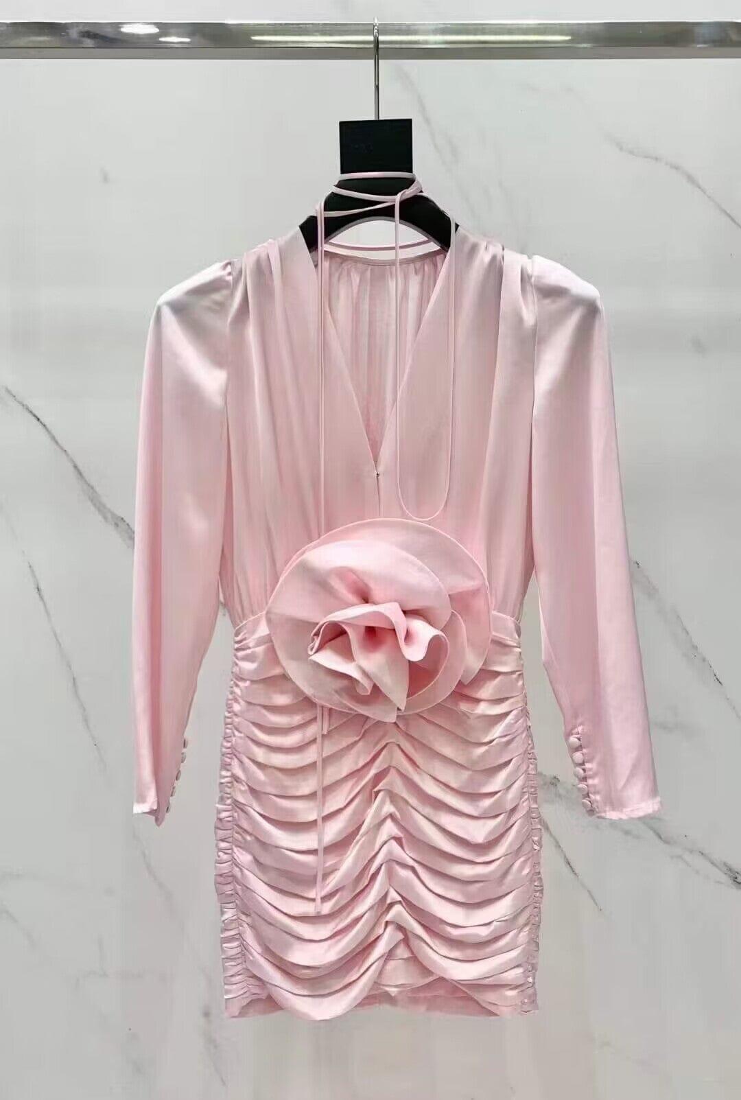 Designed with both style and comfort in mind, this dress is perfect for any occasion. Whether you're heading out for a casual brunch or a romantic date night, this Long Sleeve Flower Mini Dress in Pink will make you stand out from the crowd.