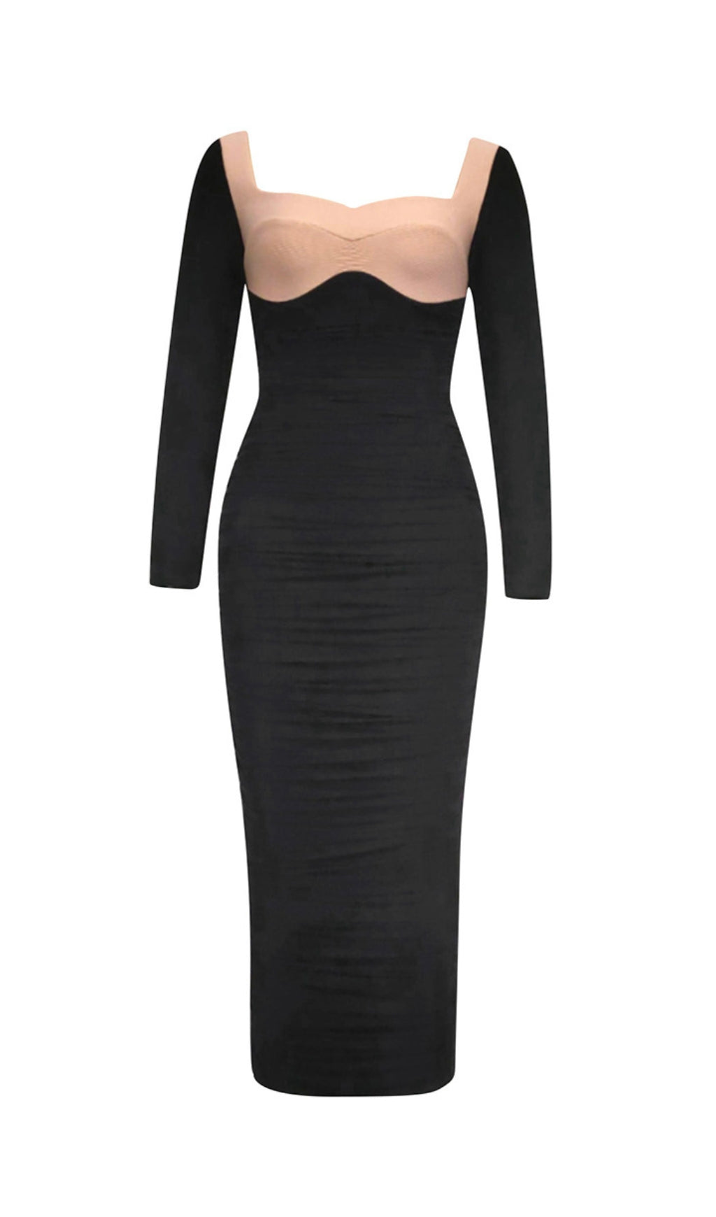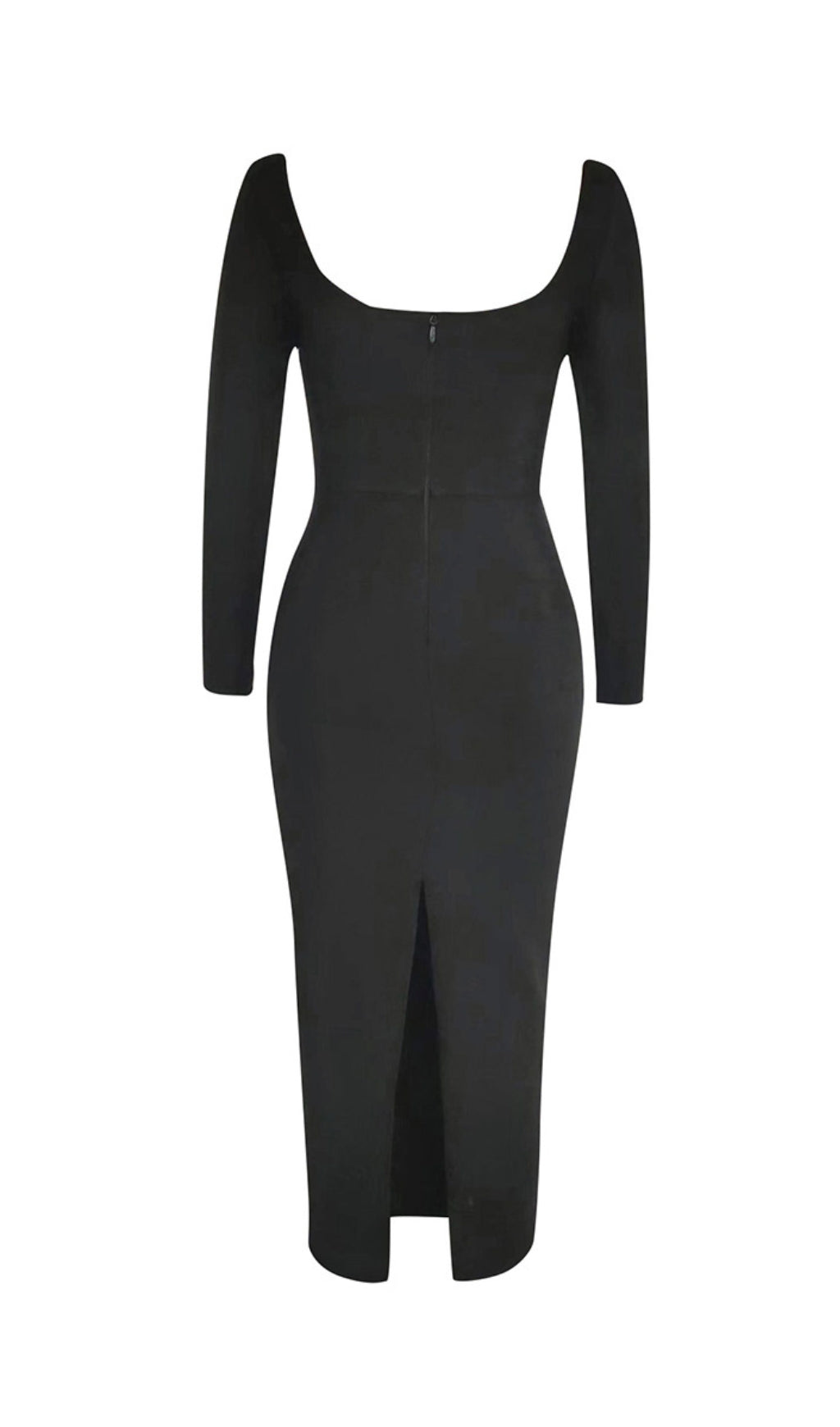 The sleek, form-fitting design accentuates your curves while the high split adds a touch of allure. Made with luxurious fabric, this dress is perfect for any upscale event. Elevate your style and turn heads with this statement piece.
