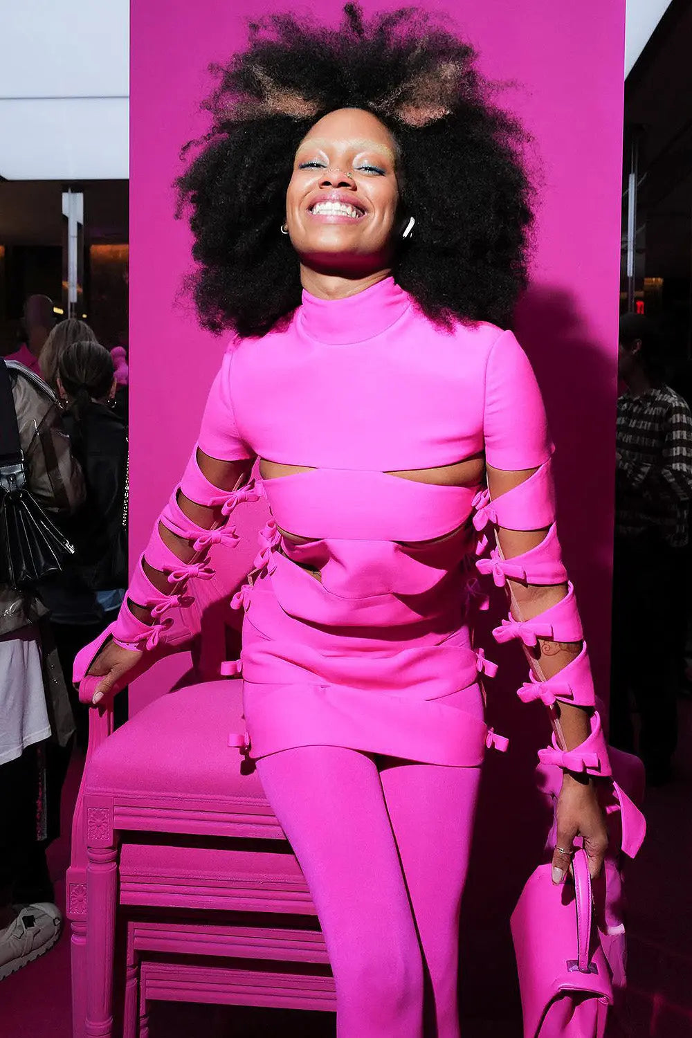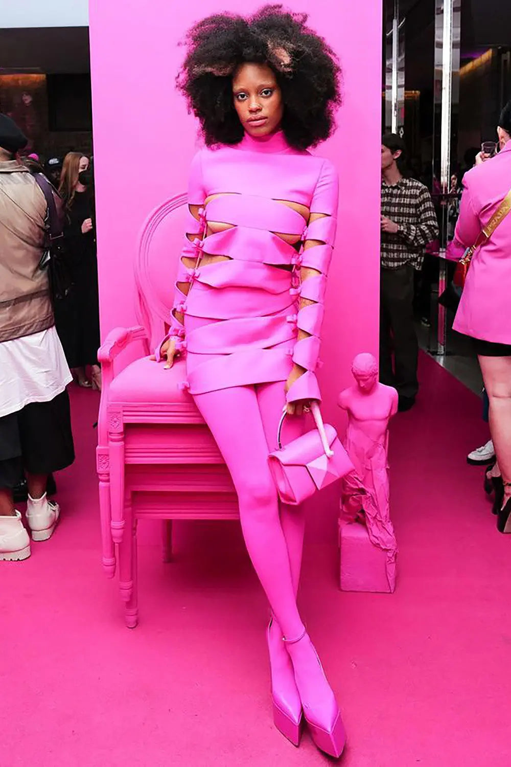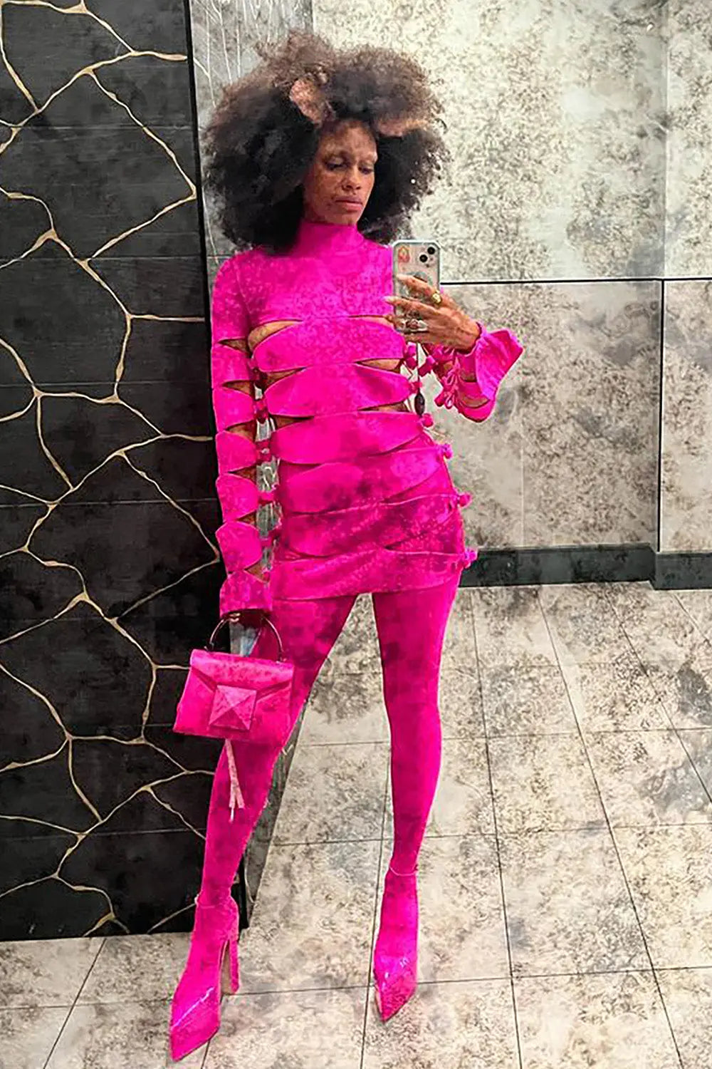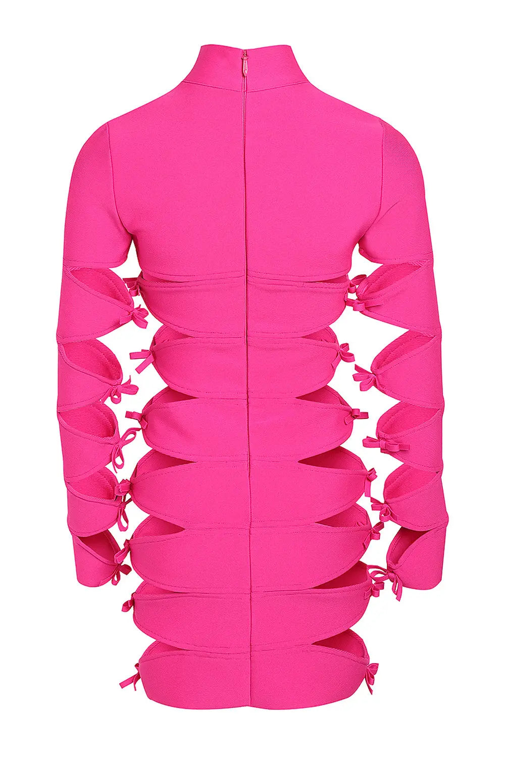 LONG SLEEVE HOLLOW OUT MINI BANDAGE DRESS IN PINK