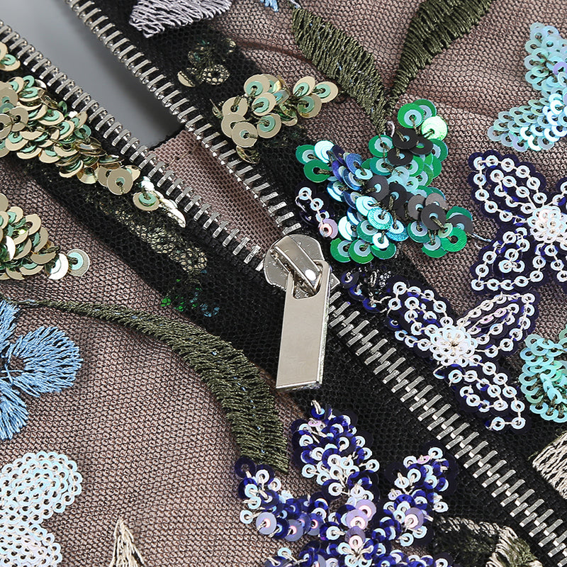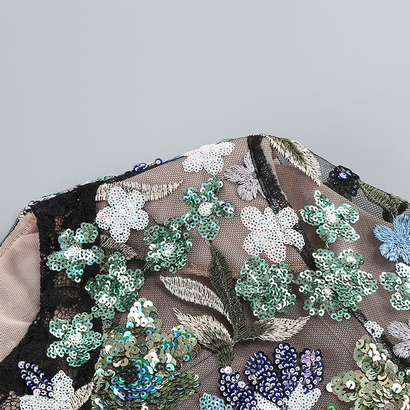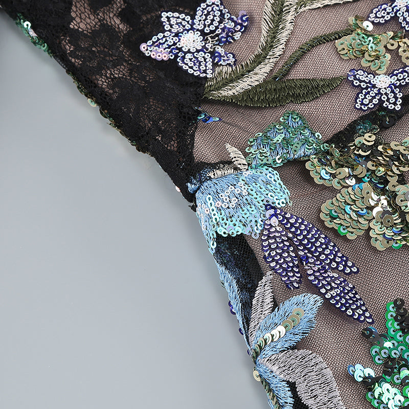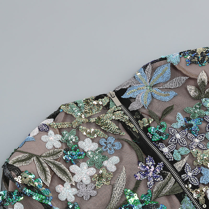 LONG SLEEVE LACE SEQUIN FLORAL DRESS