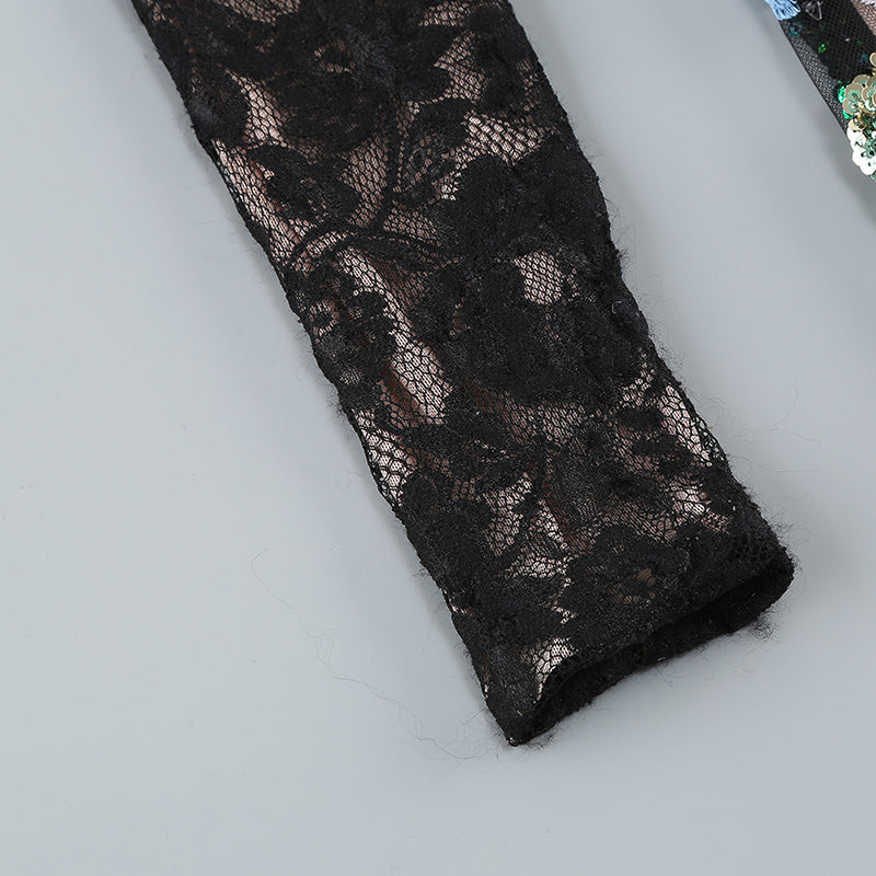 The delicate lace and shimmering sequins are sure to turn heads, while the long sleeves provide both elegance and warmth. Perfect for any special occasion, this dress is a must-have for anyone who wants to make a statement and feel beautiful.