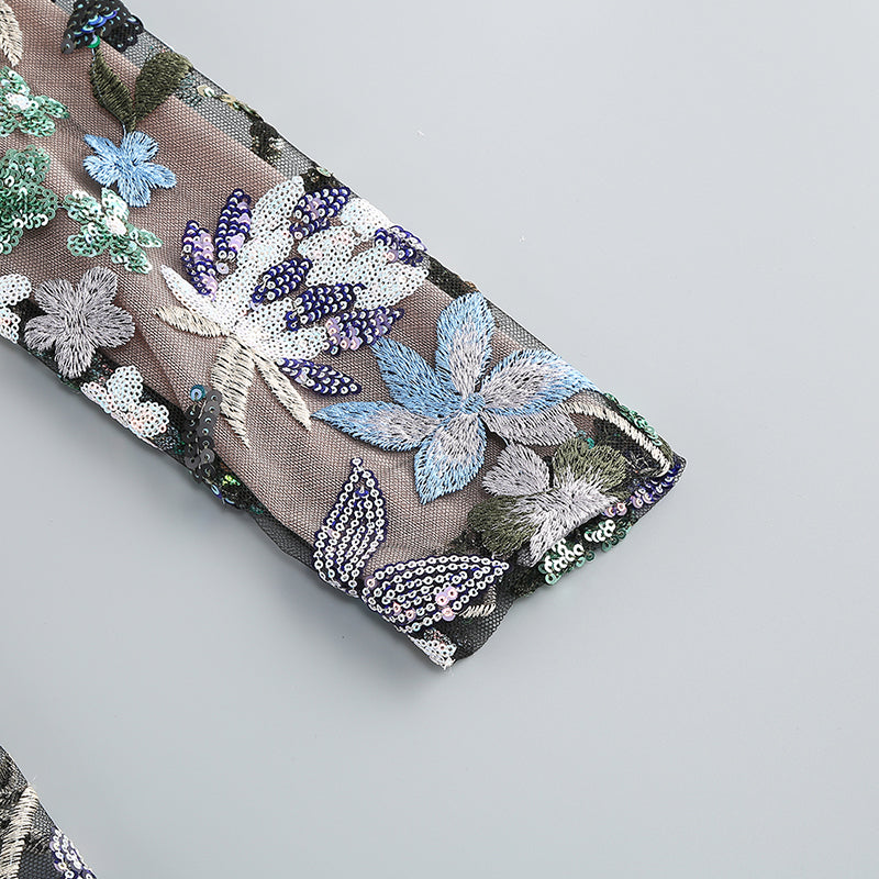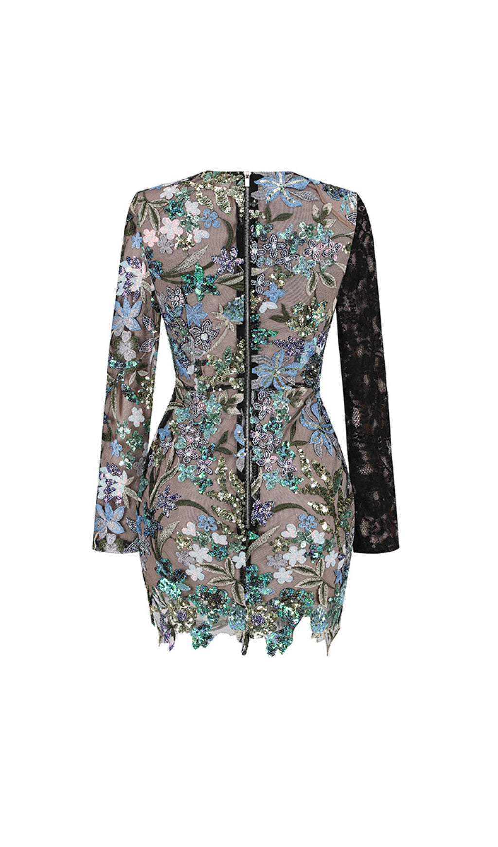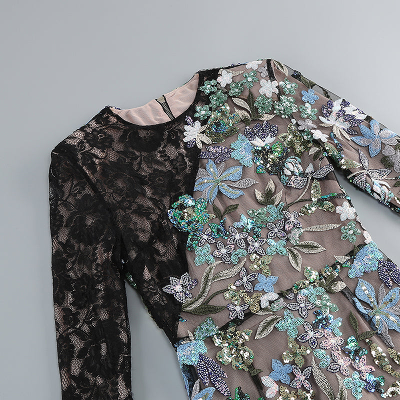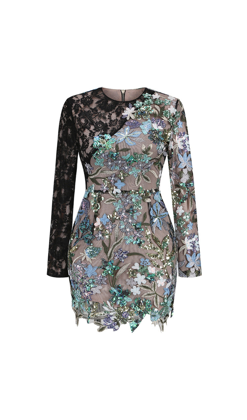The delicate lace and shimmering sequins are sure to turn heads, while the long sleeves provide both elegance and warmth. Perfect for any special occasion, this dress is a must-have for anyone who wants to make a statement and feel beautiful.