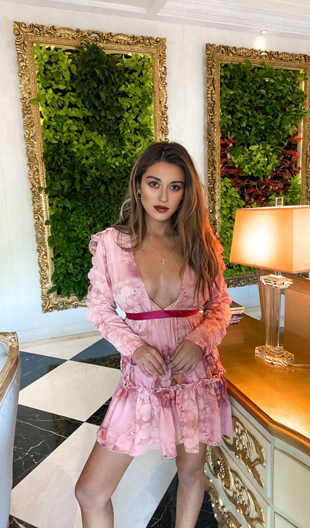Introducing our Long Sleeve Print Mini Dress in Pink, the perfect piece to make a statement and turn heads wherever you go. This dress is designed to enhance your feminine charm and showcase your beautiful figure. With its waist-in design and vibrant print, you'll feel like the most dazzling girl in the crowd. The stunning pink color adds a touch of elegance and sophistication.