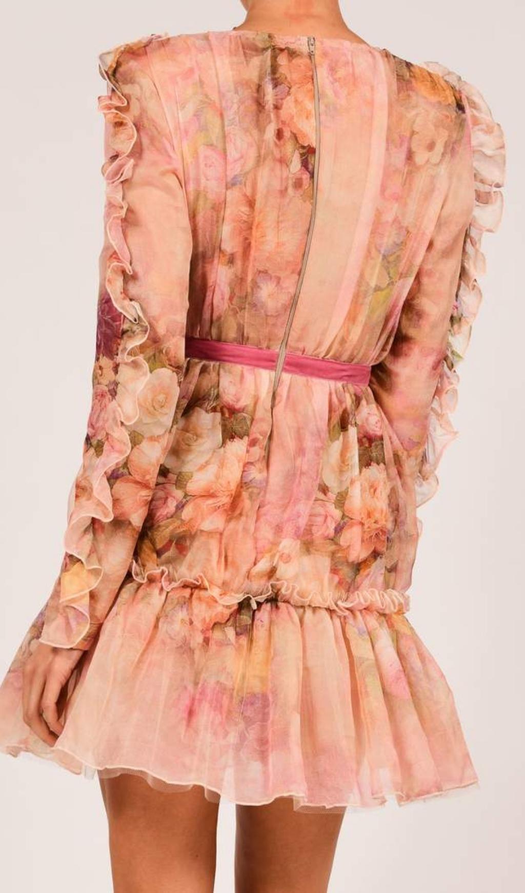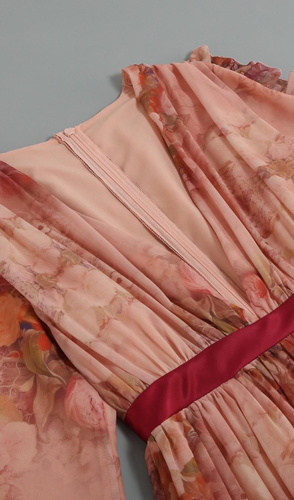 LONG SLEEVE PRINT MINI DRESS IN PINK