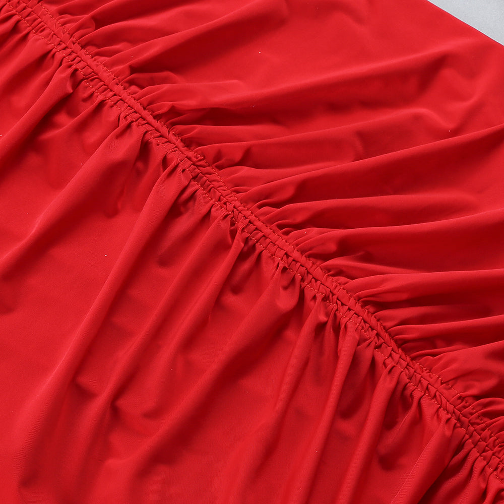 The stunning red color and figure-hugging silhouette exude confidence and grace. The ruched detailing flatters your curves, making you feel like a true mermaid. Perfect for a special occasion or a night out, this dress will make you stand out and feel fabulous!