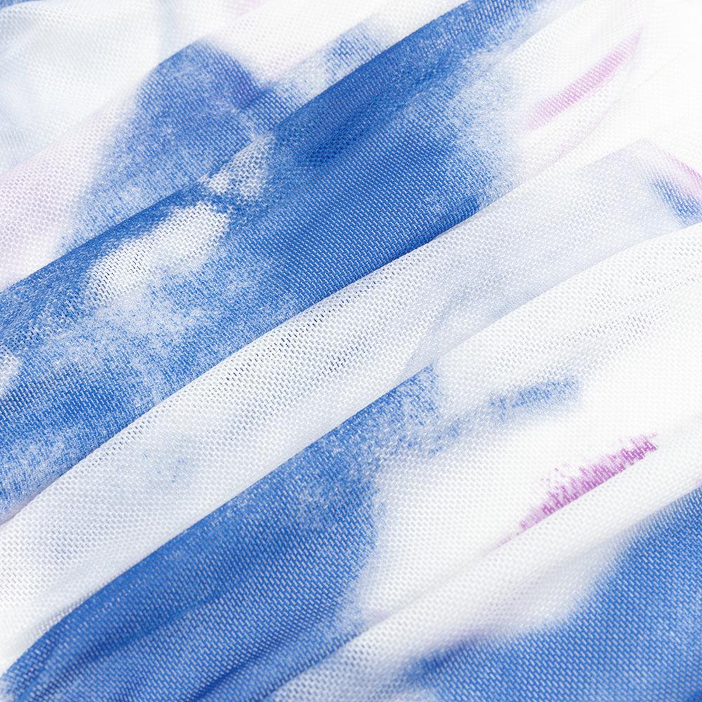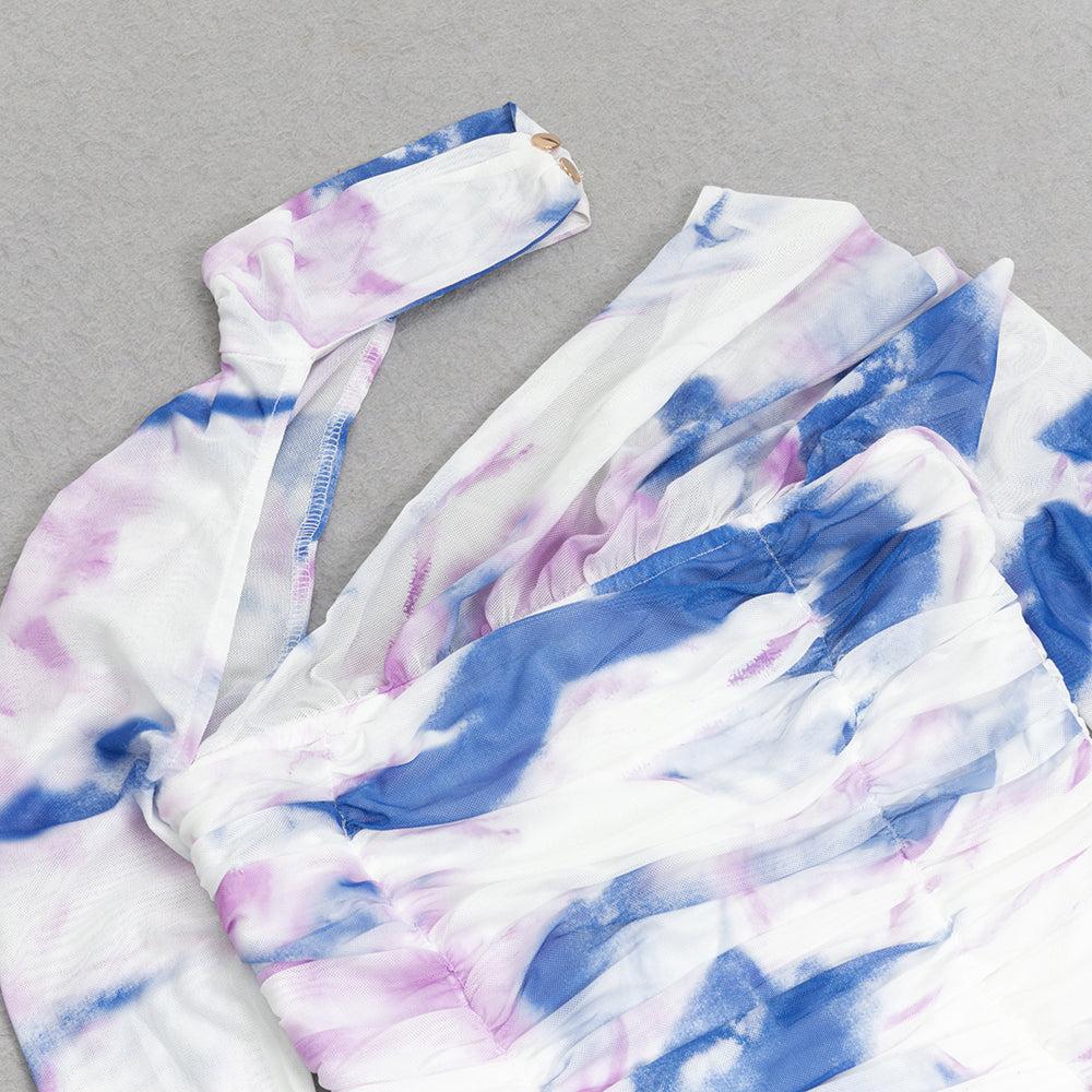 LONG SLEEVE RUCHED MIDI DRESS IN WHITE BLUE