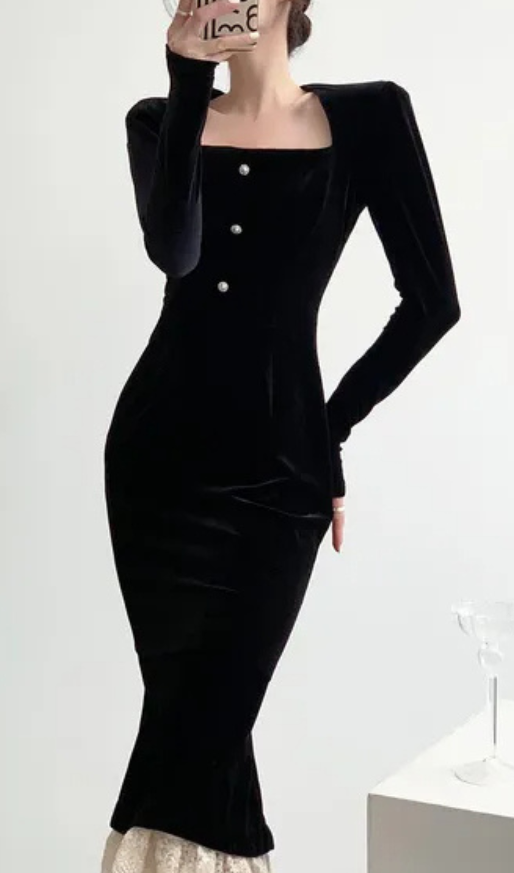 AYDA RUFFLE HEM VELVET MIDI DRESS